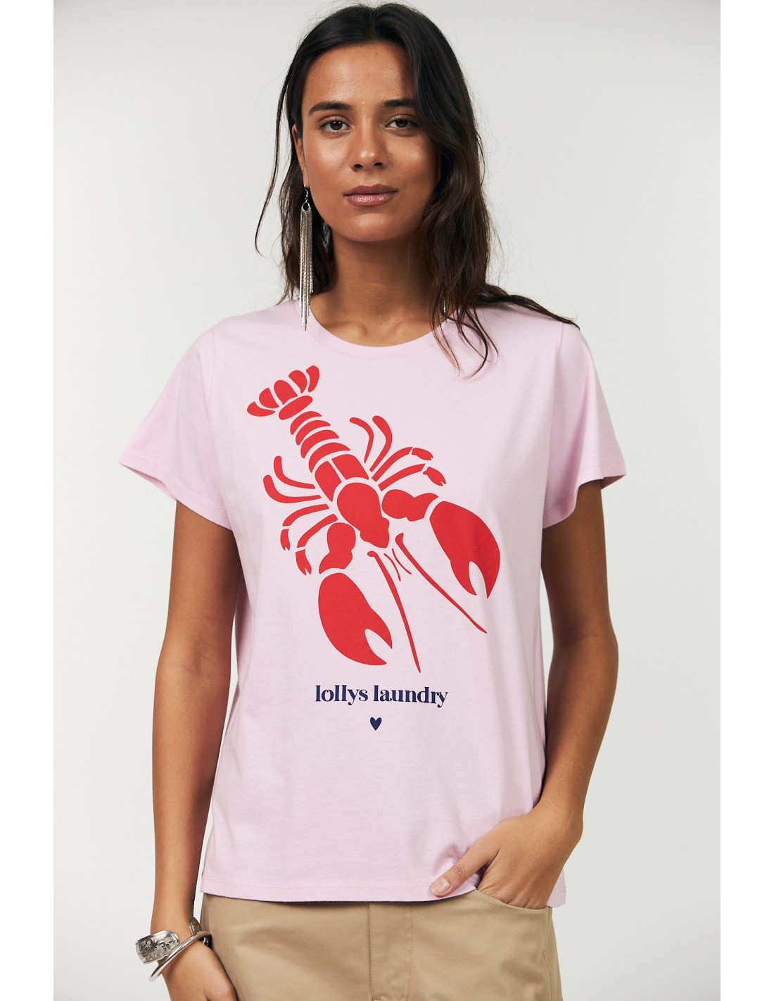 • Calidad 100% algodón rosa suave• Gran estampado rojo de langosta en el frente y logo