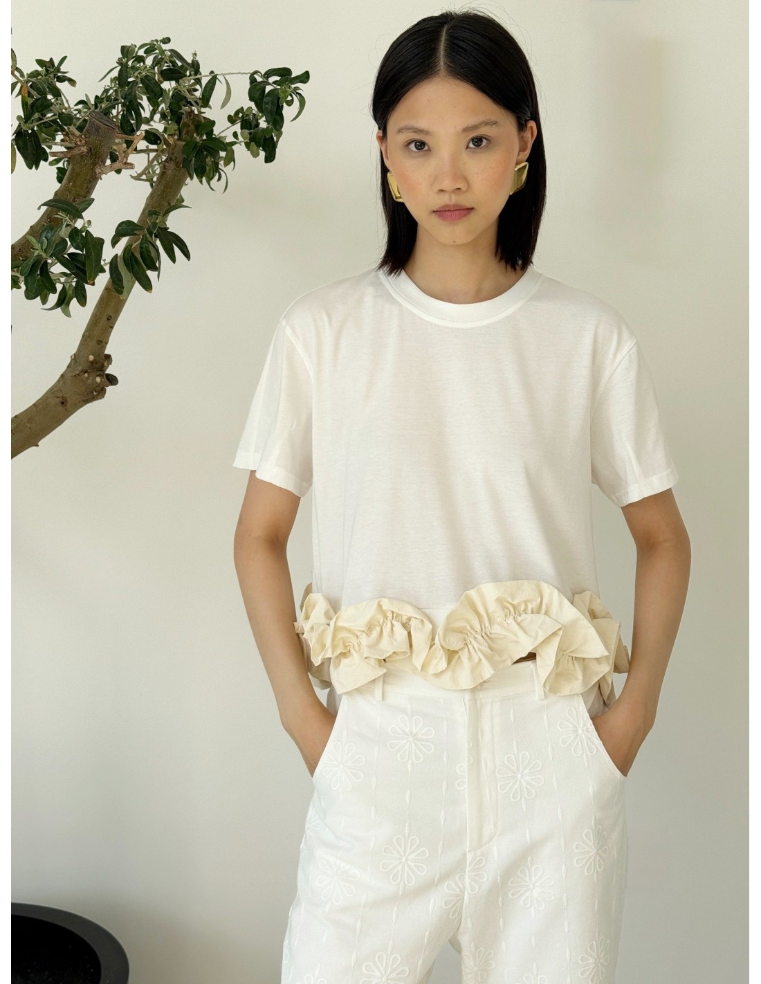 Divertida camiseta de mangas cortas diseñada por Jovonna London, con cinta fruncida en contorno. También disponible en crudo y negro.