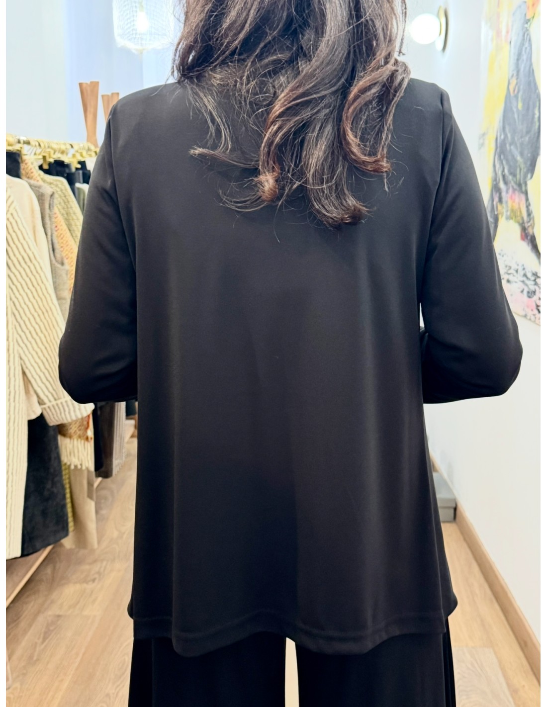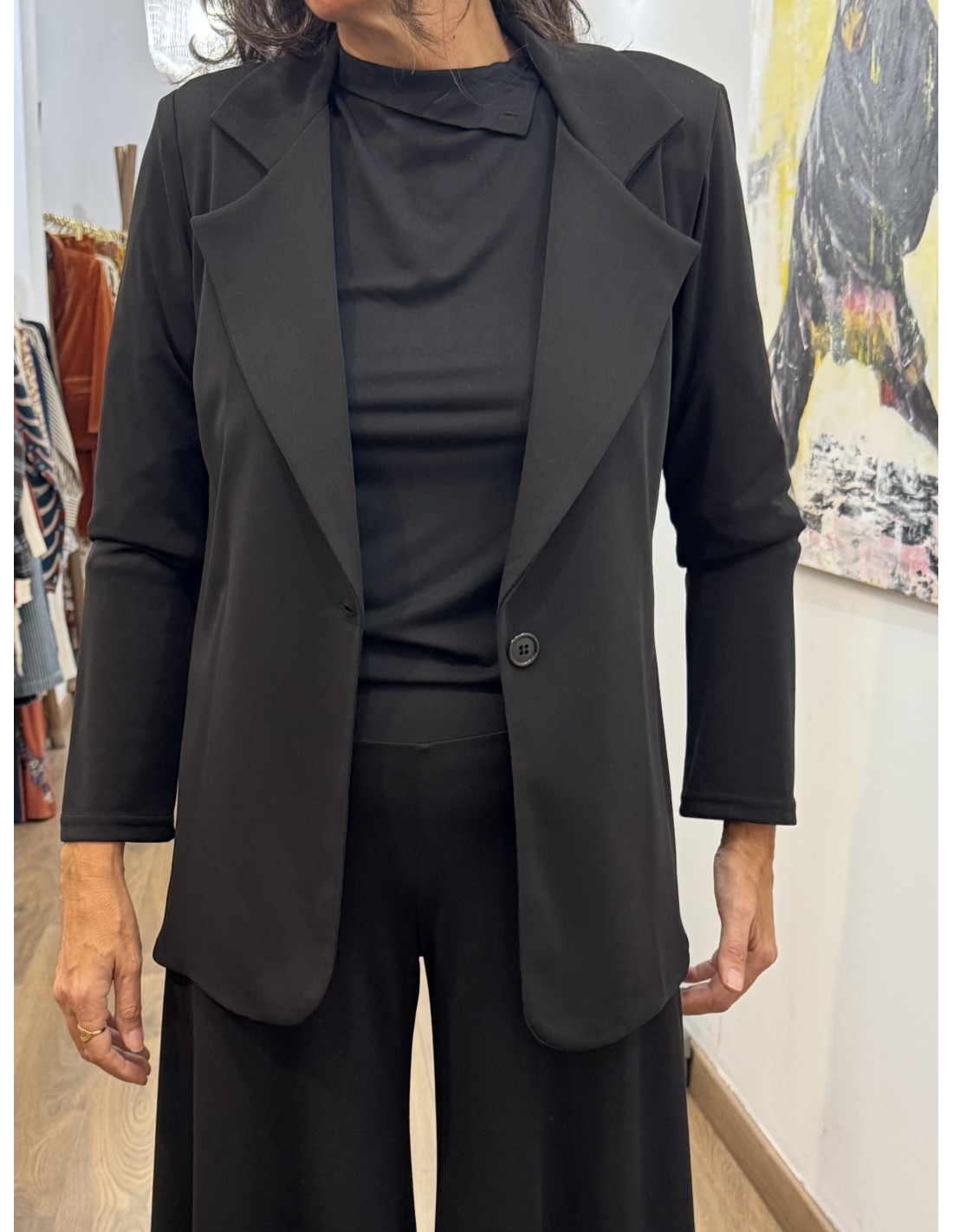 Blazer clásica en crepe negro con un botón y bolsillos de tapeta. Tiene elastano por lo que de adapta mejor a la figura. Puedes seleccionar tu talla habitual, talla normal.