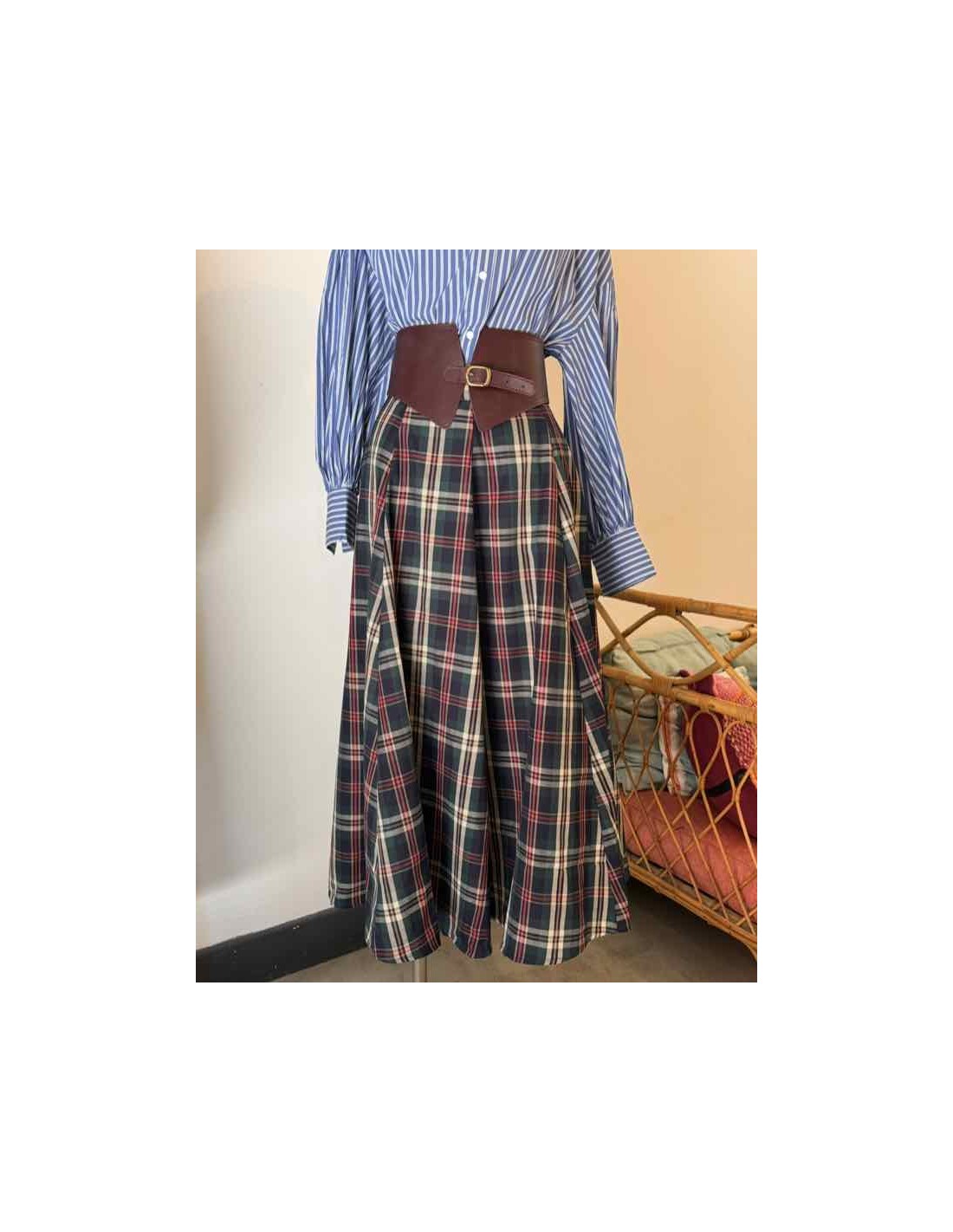 FALDA MIDI ESTAMPADA CUADROS ESCOCESES 100% POLIESTER