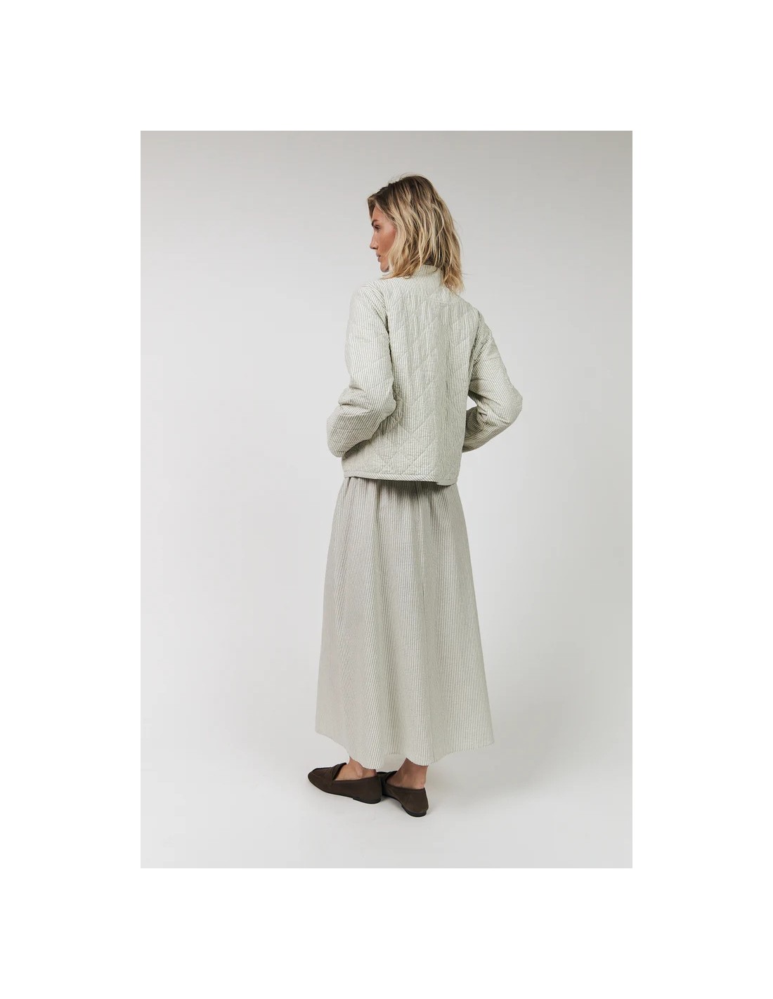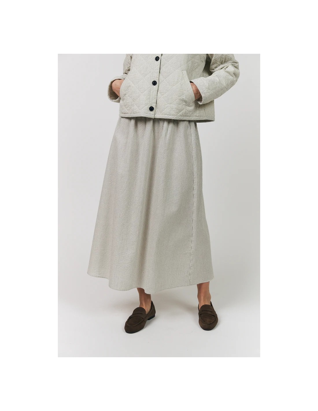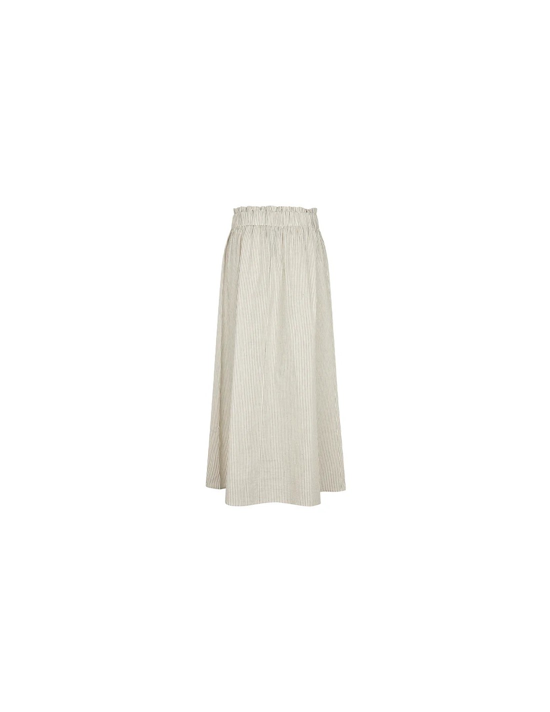 IslaLL es una falda larga fresca y femenina con una cómoda cintura elástica que ofrece un ajuste favorecedor y comodidad durante todo el día. Las finas rayas y el corte limpio hacen que la falda sea fácil de combinar.
