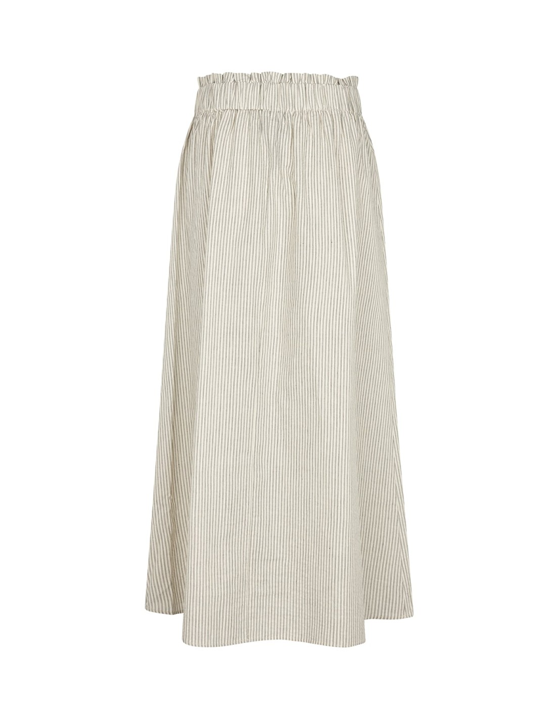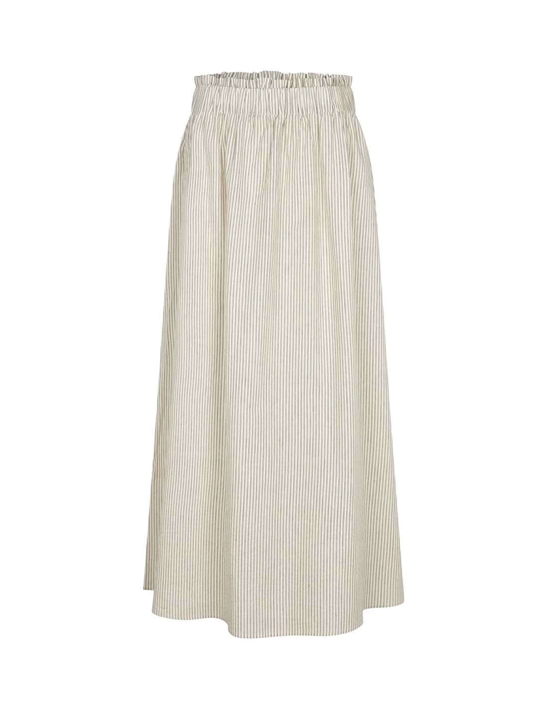 IslaLL es una falda larga fresca y femenina con una cómoda cintura elástica que ofrece un ajuste favorecedor y comodidad durante todo el día. Las finas rayas y el corte limpio hacen que la falda sea fácil de combinar.
