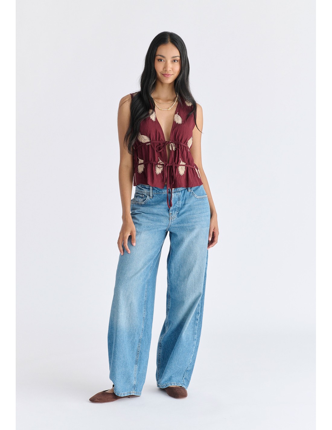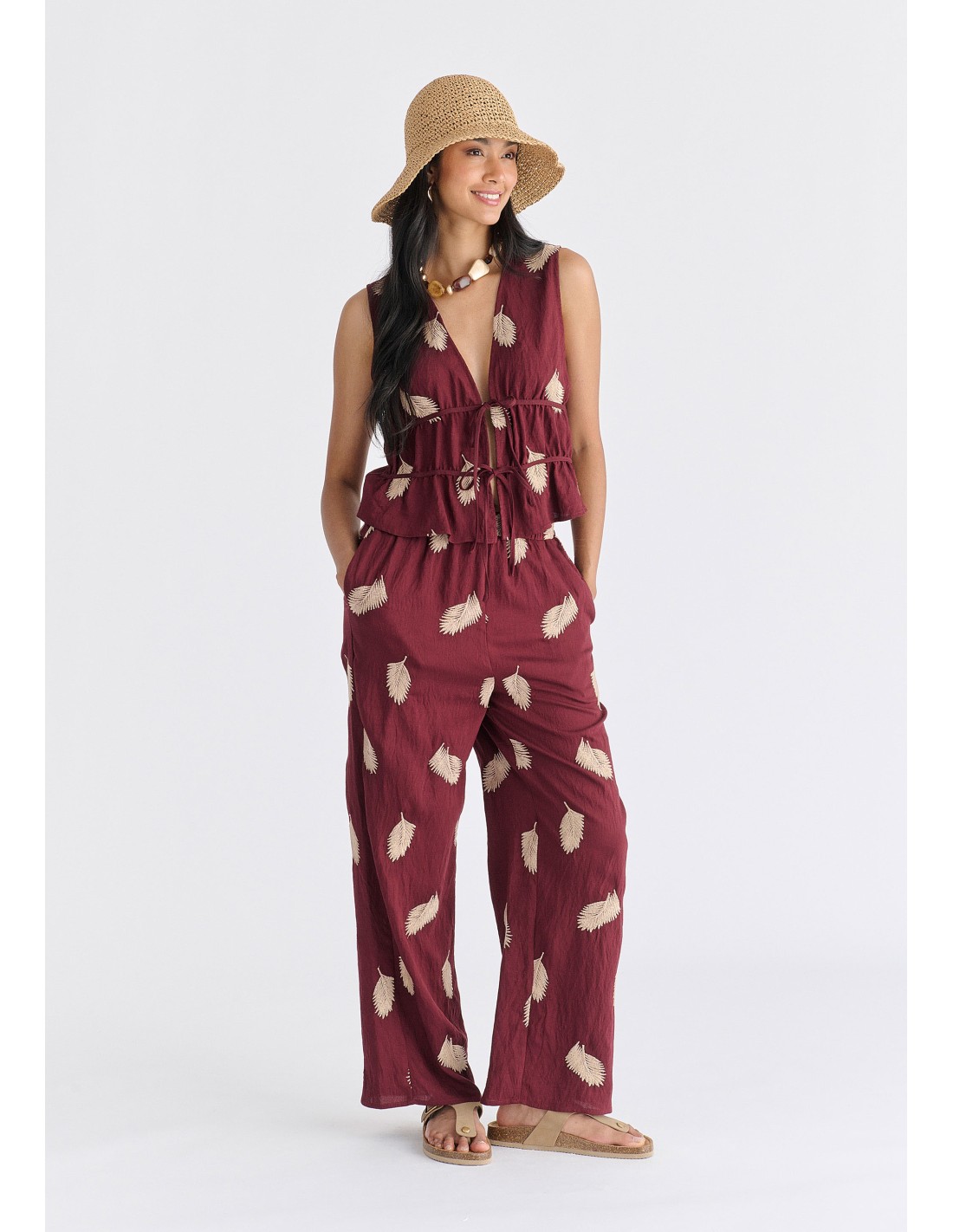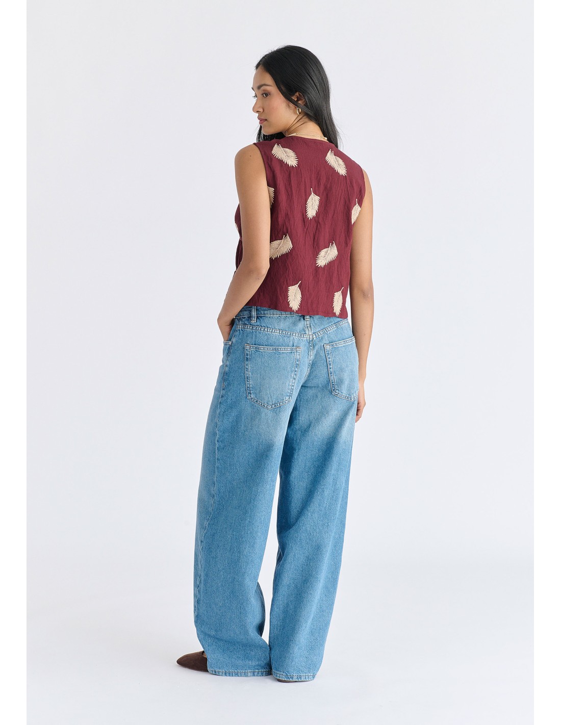 CHALECO CON BORDADOS DE HOJAS Y CIERRE CON LAZADAS EN DELANTERO - PAISIE LONDON - COMPOSICIÓN: 75% VISCOSA 25% NYLON