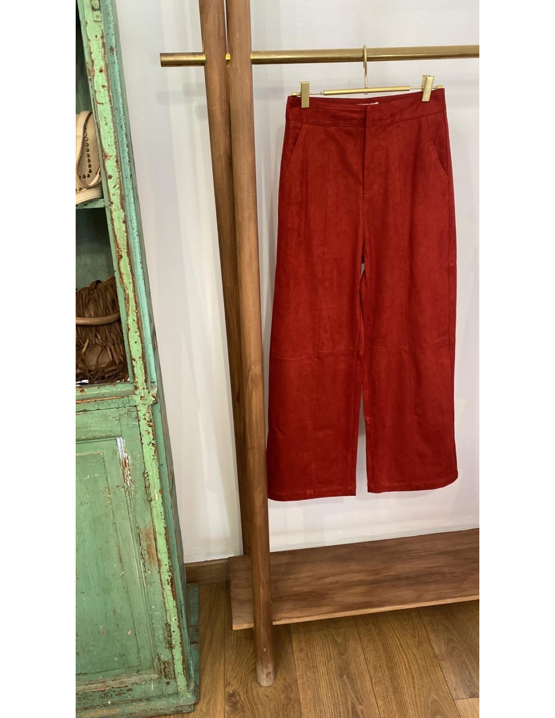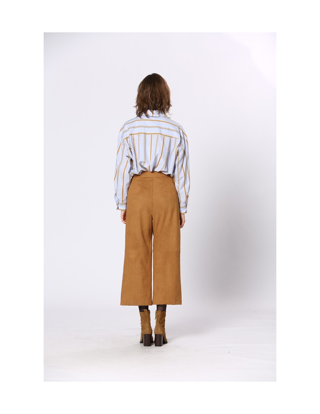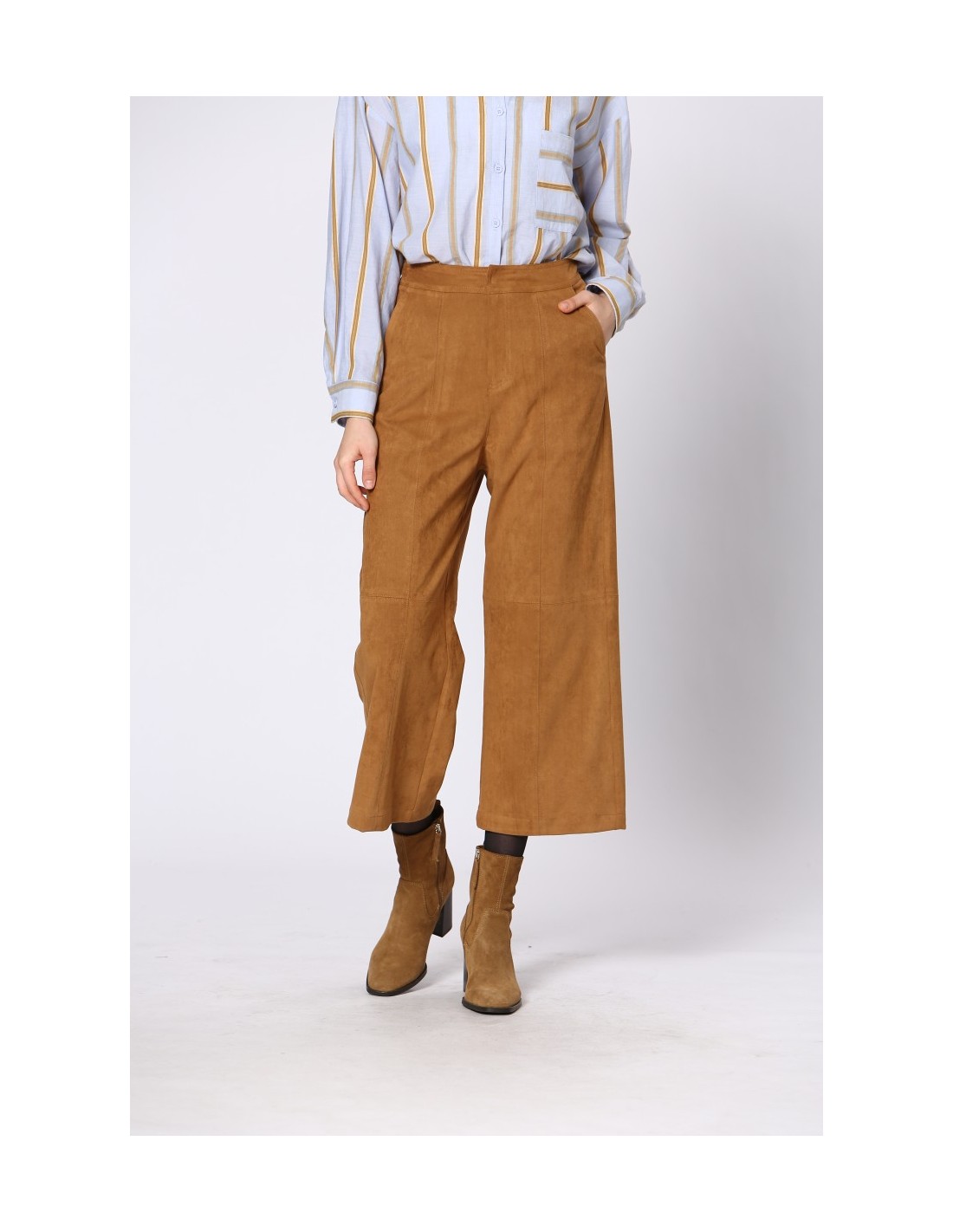 .PANTALÓN RECTO CROPPED EFECTO ANTE - 90% TERILENO Y 10% ELASTÁN.