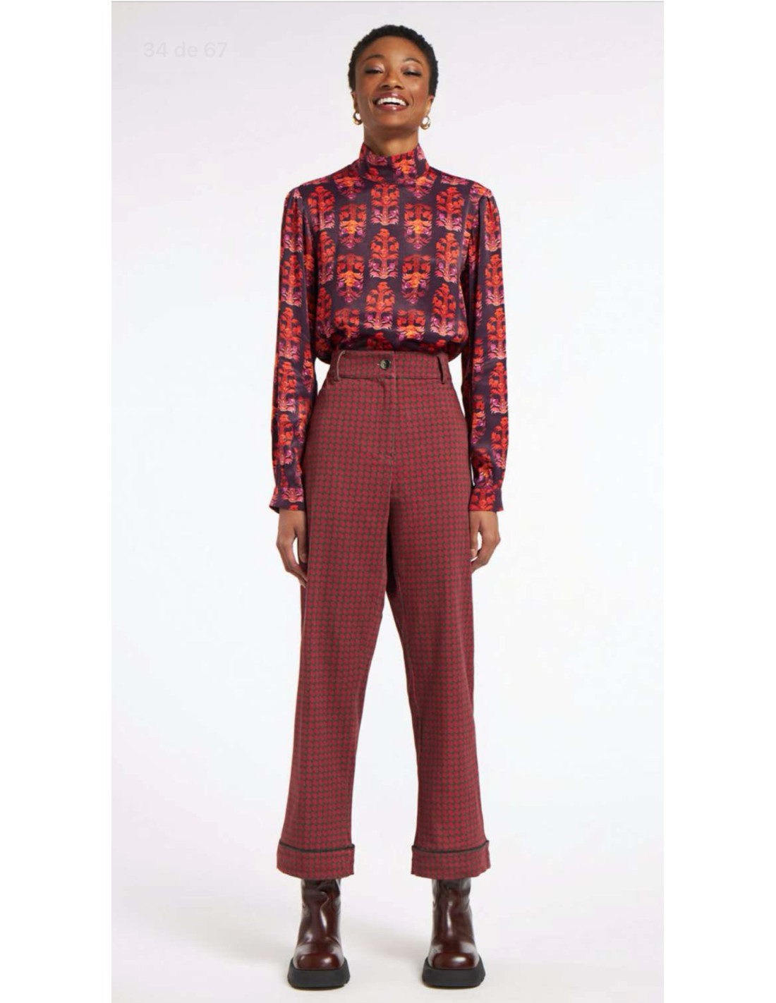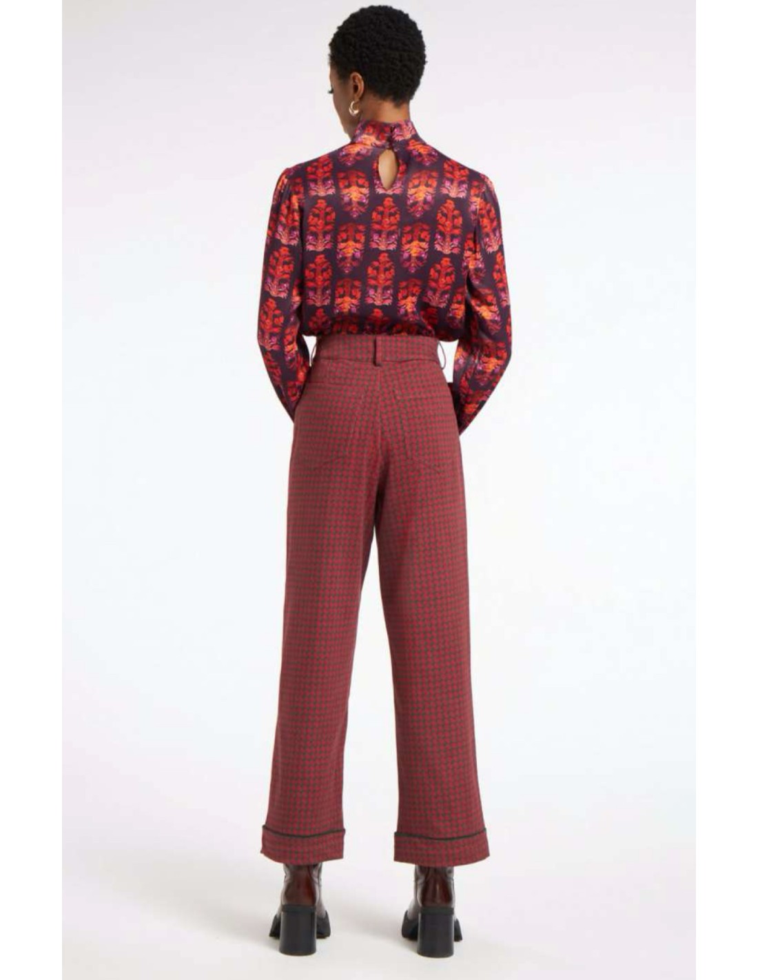 El estampado "Diamonds Maroon" añade un toque distintivo y sofisticado, perfecto para aquellos que aprecian la alta calidad y el diseño exclusivo. Este pantalón forma parte de una colección exclusiva, diseñada para un público que busca prendas únicasñ. Su corte favorecedor y su tejido de primera calidad lo convierten en una pieza esencial en el fondo de armario de mujeres exigentes.