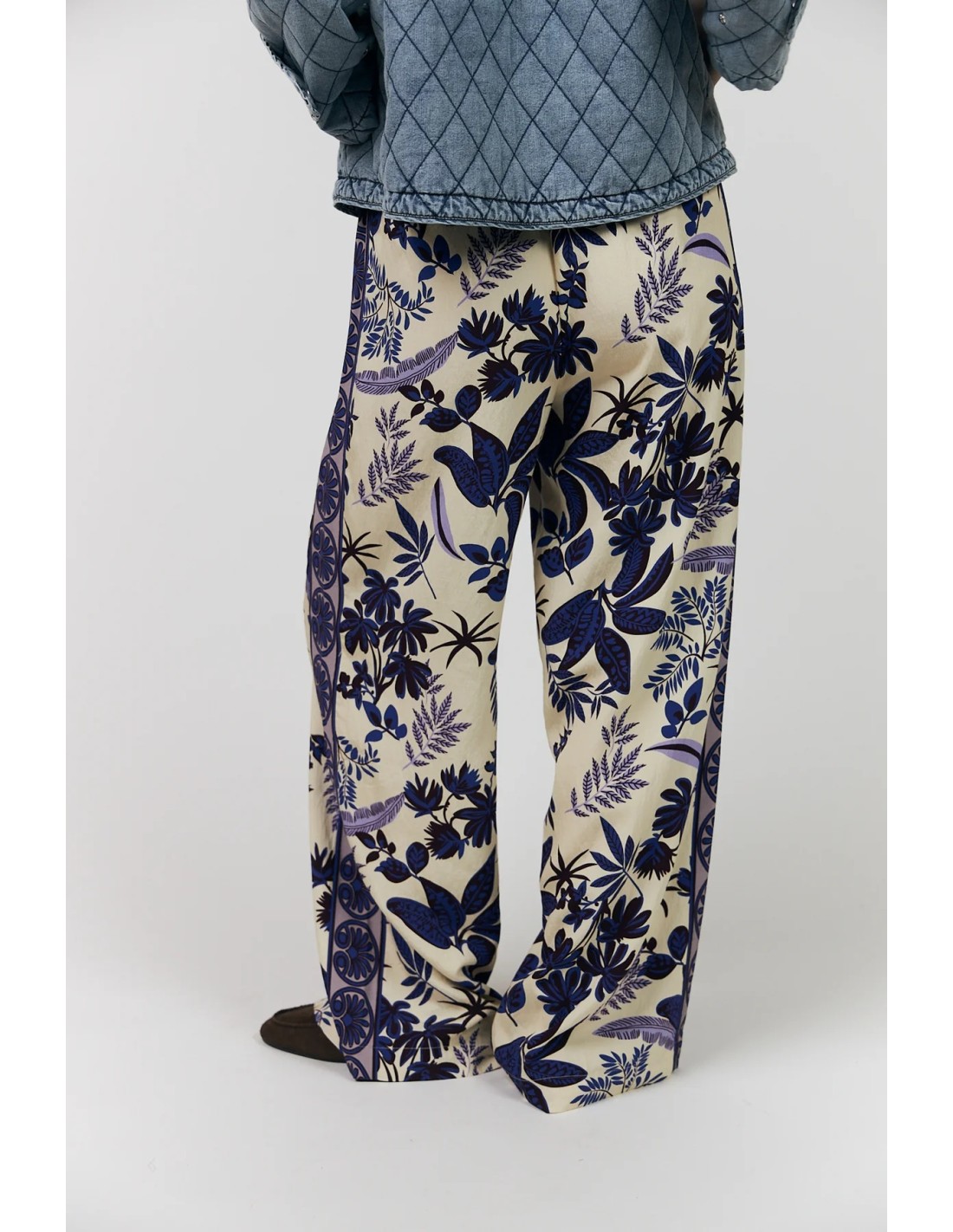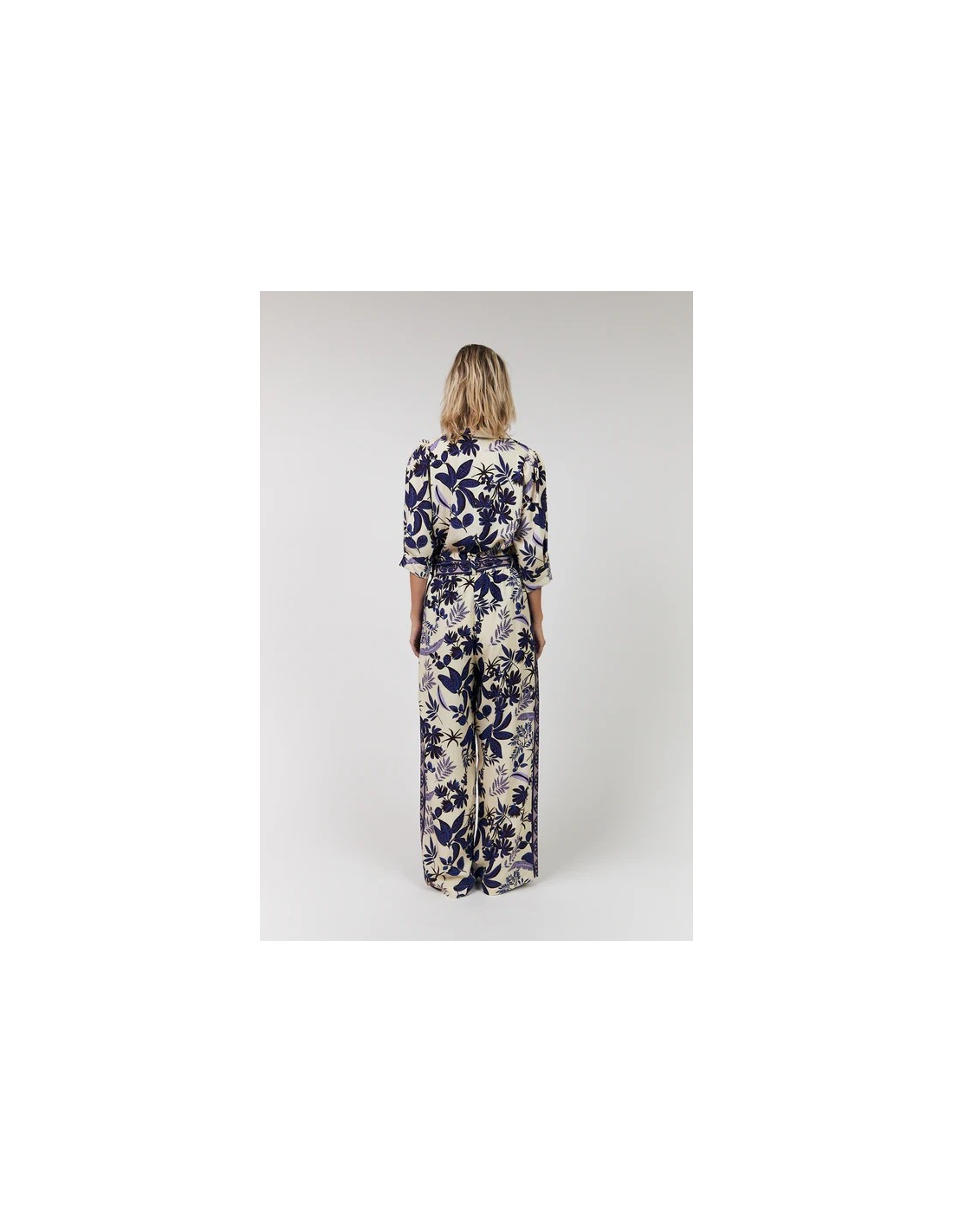 VickyLL es un pantalón ligero y fluido con un precioso estampado que aporta mucho color y personalidad a tu look. Tienen un corte relajado, cintura elástica y un cinturón ancho de corbata que resalta tu cintura. Póntelos con la camisa BonoLL en el mismo estampado para un look completo que casi es como un mono o con una camiseta sencilla.