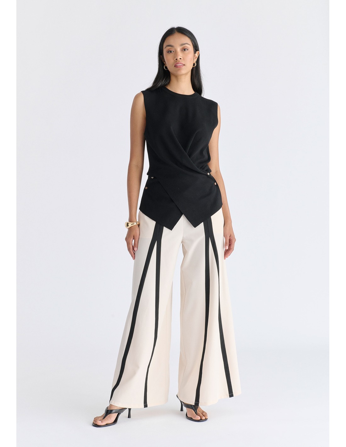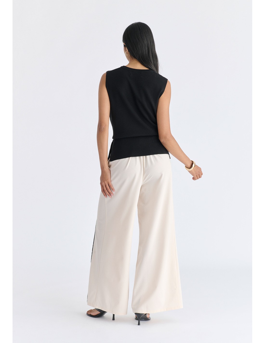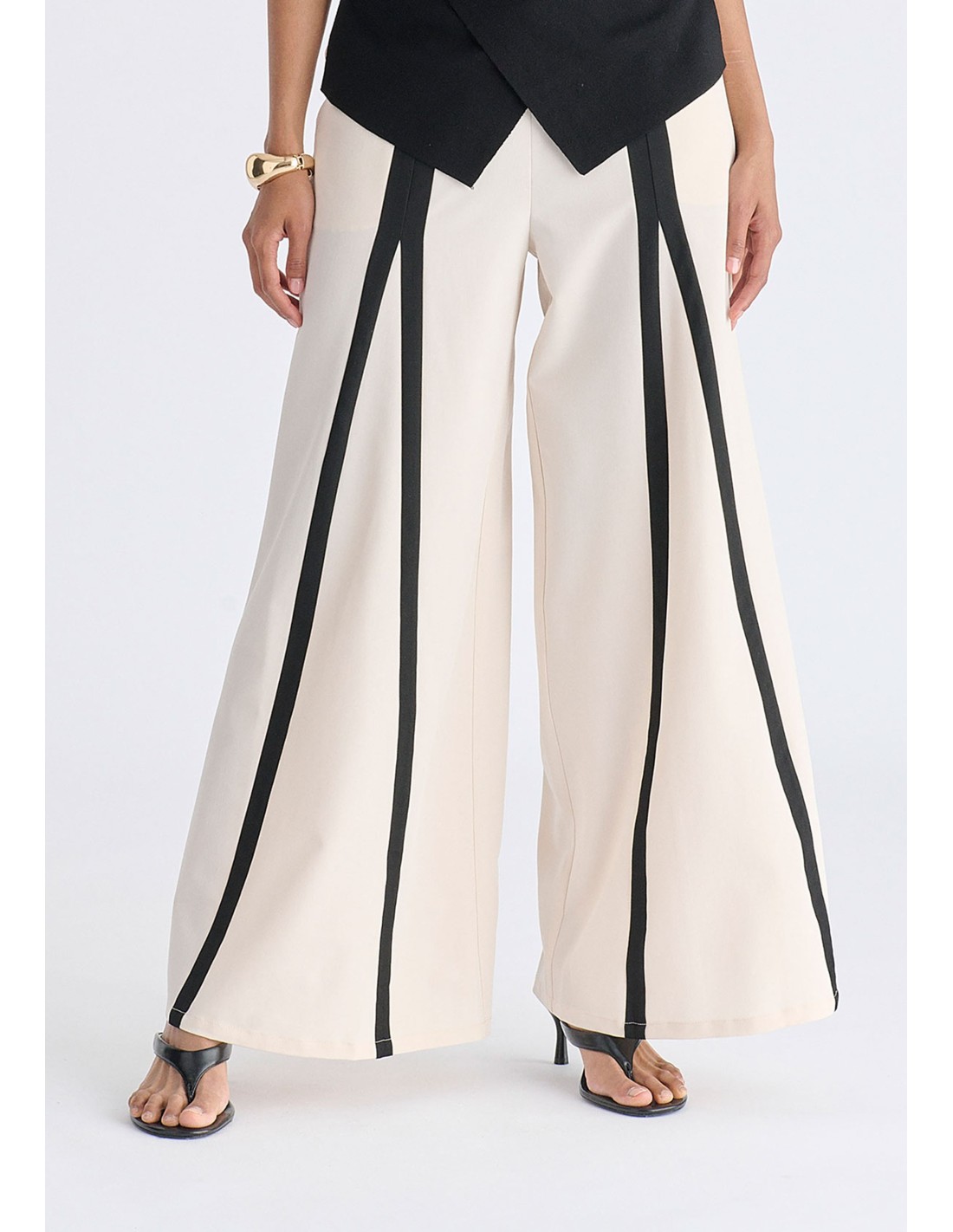 Pantalones anchos con detalles en contraste.