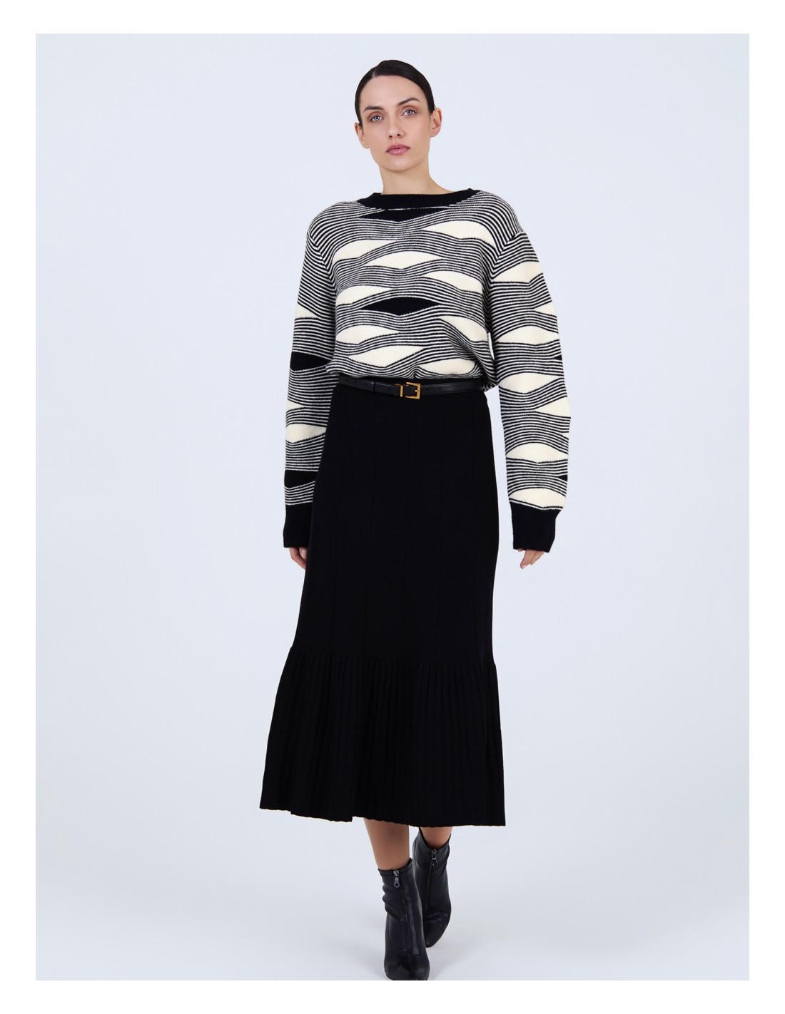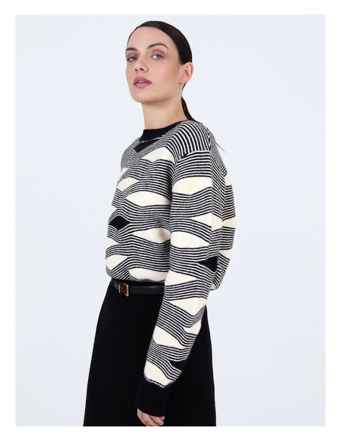 JERSEY INTARSIA ONDAS - Jersey con intarsia de motivo ondas bicolor. Cuello redondo. Manga larga abullonada. Acabados de canalé a contraste. 45% ACRILÍCO 30% POLIAMIDA 25% POLIESTER RECICLADO - Skatie