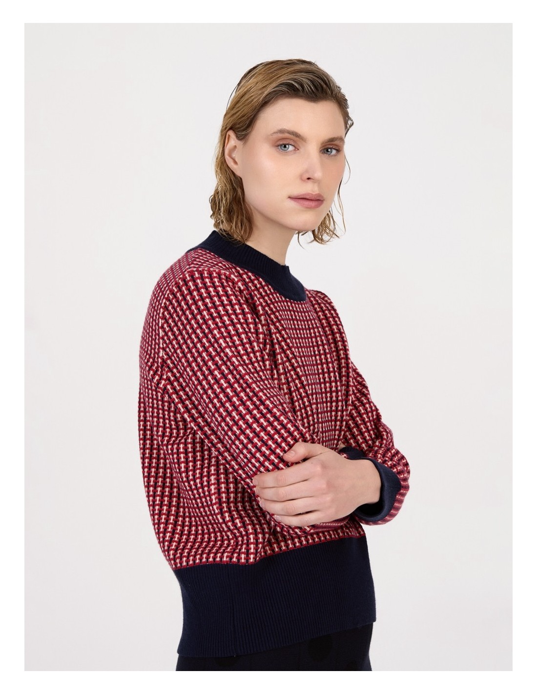 Jersey jacquard tramado con mezcla de viscosa. Cuello redondo. Manga larga. Canalés a contraste - Skatie. 50% VISCOSA 30% NYLON 20% POLIESTER