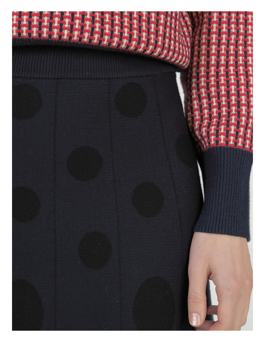 Falda de punto con mezcla de viscosa. Jacquard con motivo de círculos. Corte evasé. Cinturilla con elástico en el interior - Skatie 50% VISCOSA 30% NYLON 20% POLIESTER