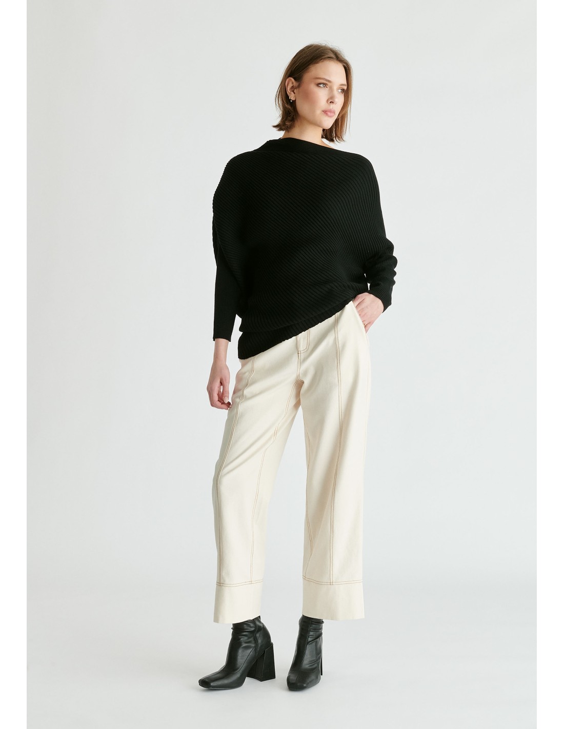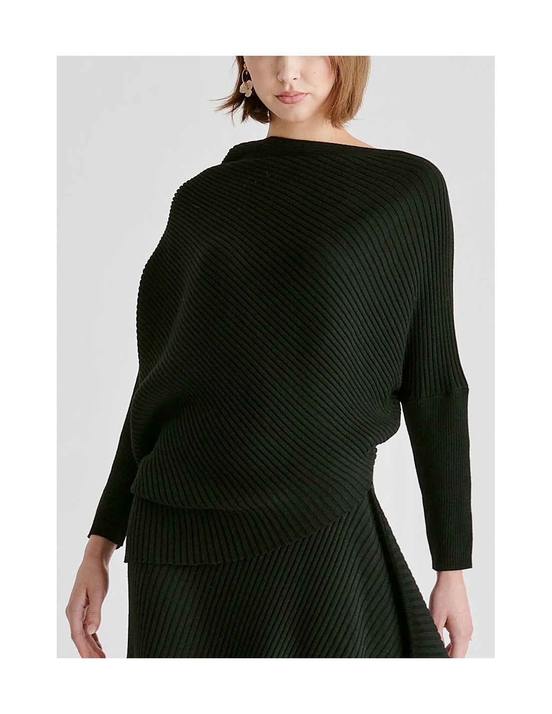 JERSEY ASIMÉTRICO CON CORTE AL BIÉS DE PUNTO DE CANALÉ - PAISIE LONDON - 55%NYLON, 20%POLYESTER, 16%ACRYLIC, 9%LANA.