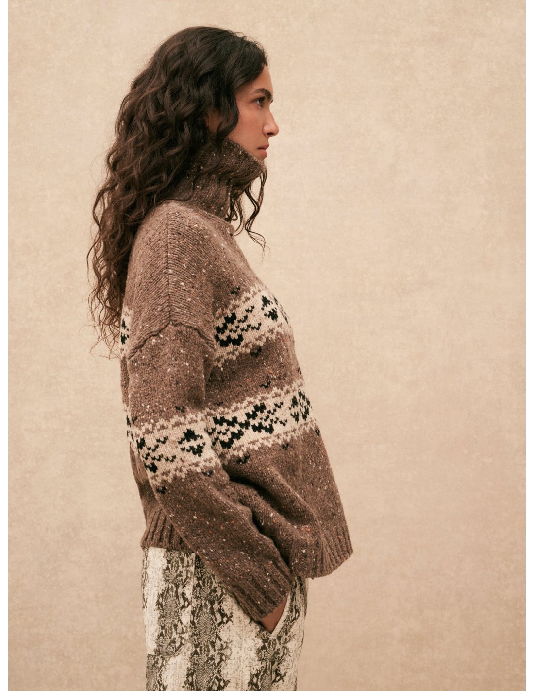 Nuestro suéter Hazel Norsk de Hod París será tu aliado perfecto en el frío invernal. Su cuello alto y su punto decorativo casi nos hacen desear que nieve. (¡Dijimos casi!). 100% Lana. Suéter de cuello alto Hombros caídos Punto elegante