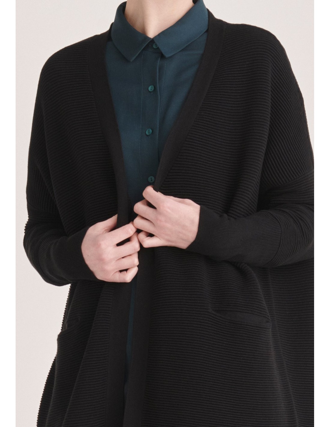 Maxi chaqueta de punto en tejido de canalé en mezcla de viscosa. Tiene mucha caida, por lo que estiliza muchísimo a pesar de ser “oversized”. Tienes calidad premium y comprobarás que no se estropea nunca. Viene cada campaña en distintos tonos.