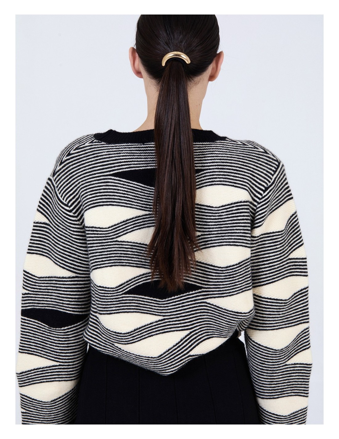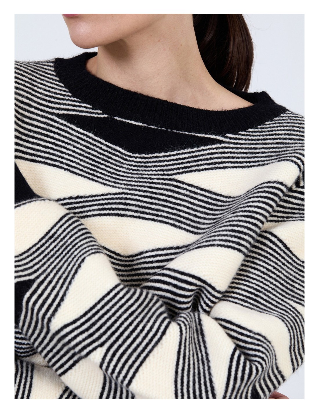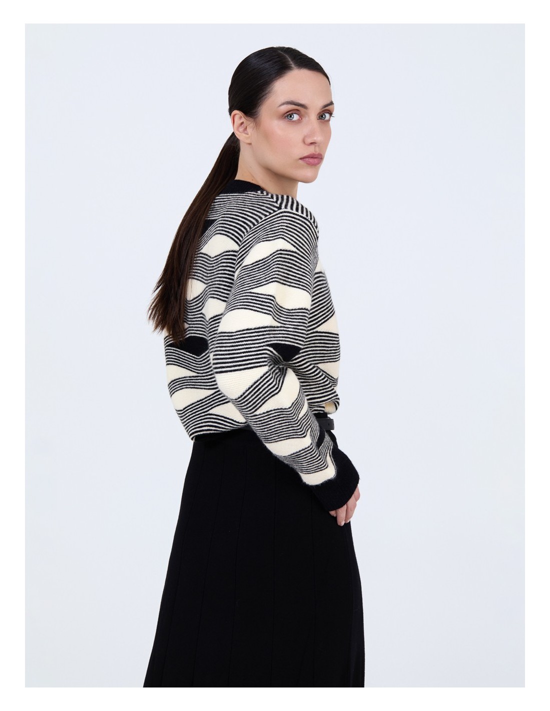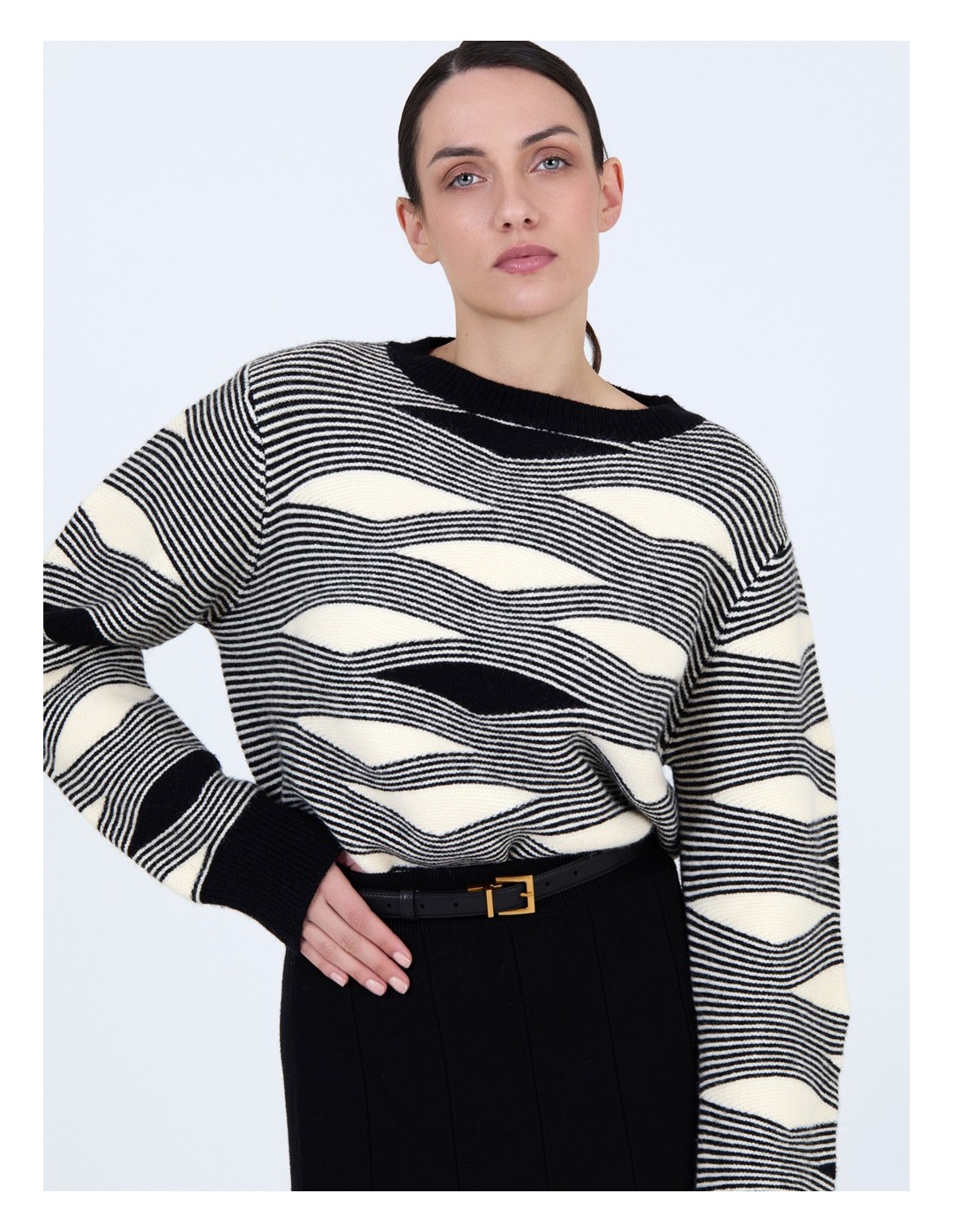 JERSEY INTARSIA ONDAS - Jersey con intarsia de motivo ondas bicolor. Cuello redondo. Manga larga abullonada. Acabados de canalé a contraste. 45% ACRILÍCO 30% POLIAMIDA 25% POLIESTER RECICLADO - Skatie
