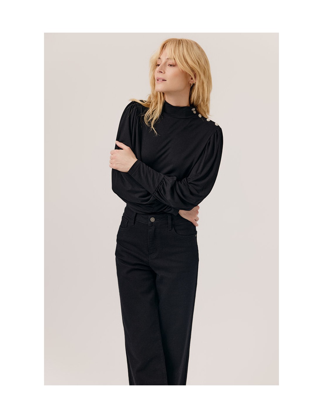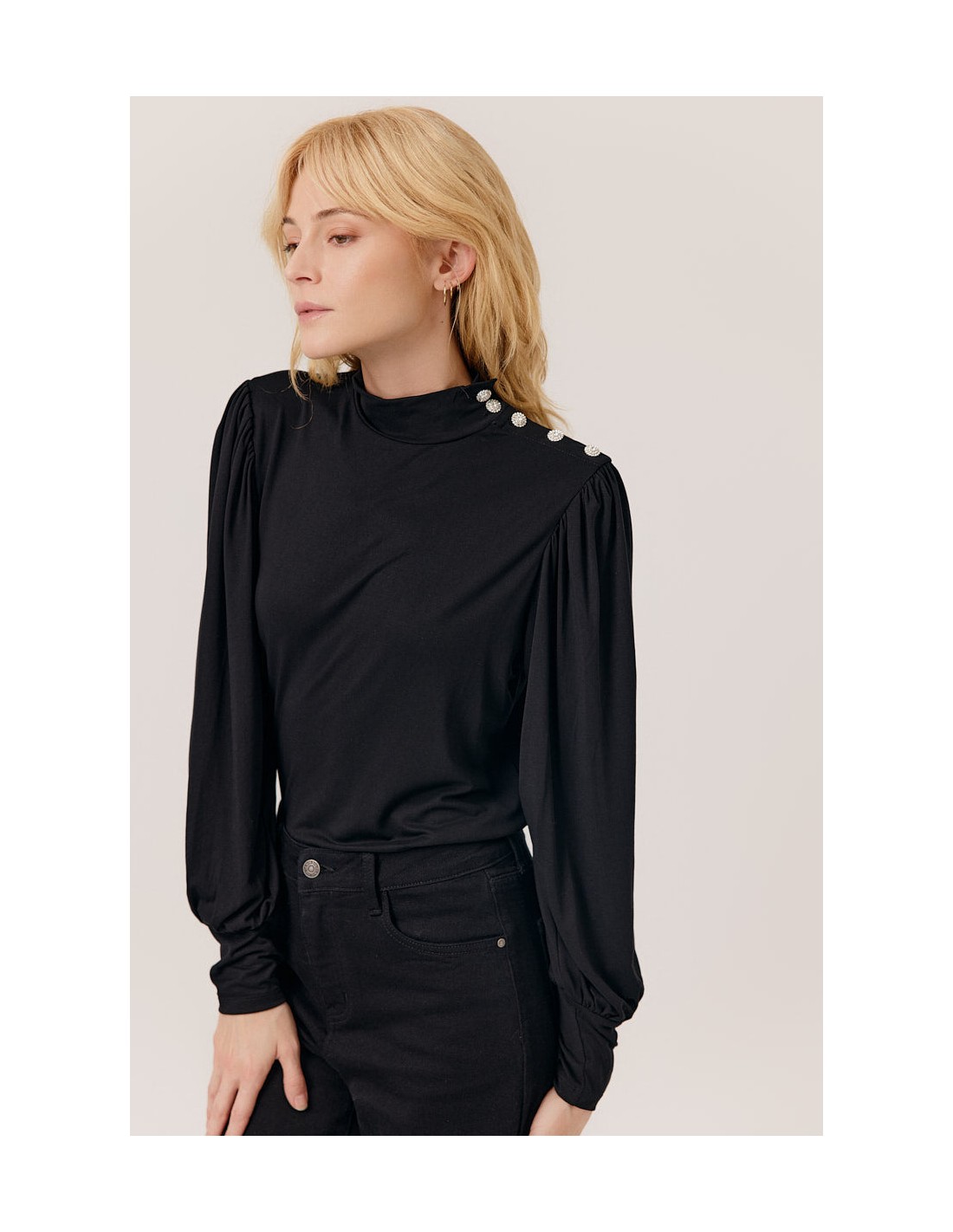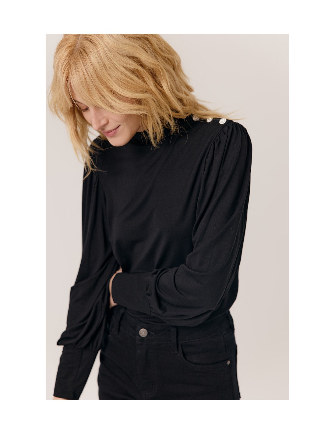 BLUSA CON BOTONES JOYA EN EL HOMBRO - ARTLOVE. 73% MODAL 27% POLIESTER