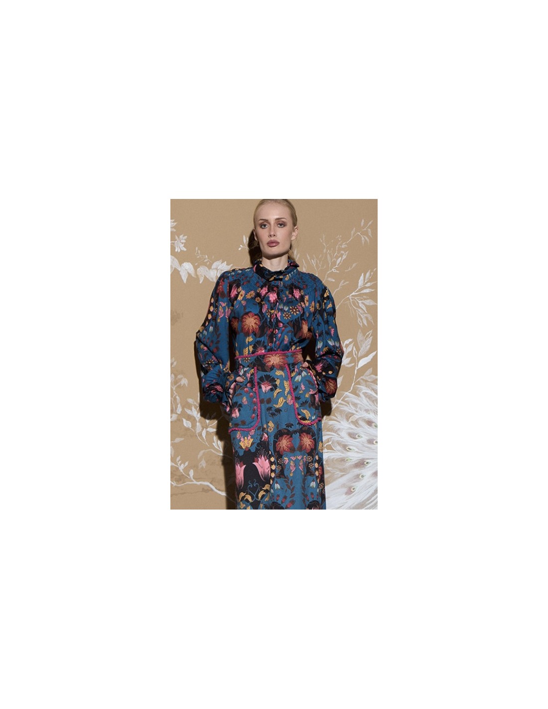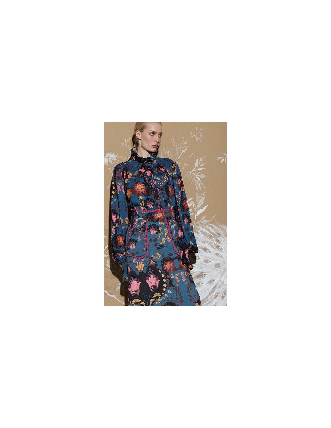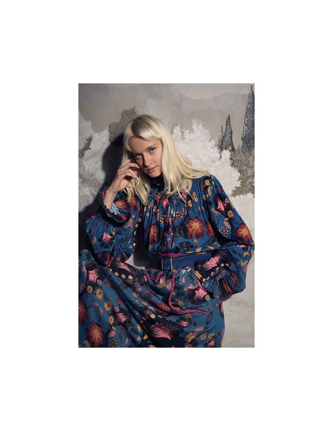 La camisa Mabel Petrol es un estilo único diseñado para destacar. El panal con el volante en las mangas largas y debajo del cuello crea una imagen que vale la pena adorar. Esta camisa de corte regular con botones en la parte delantera y este estampado entrañable puede transformar el invierno en la temporada más entrañable. 97% VISCOSA 3% SPANDEX