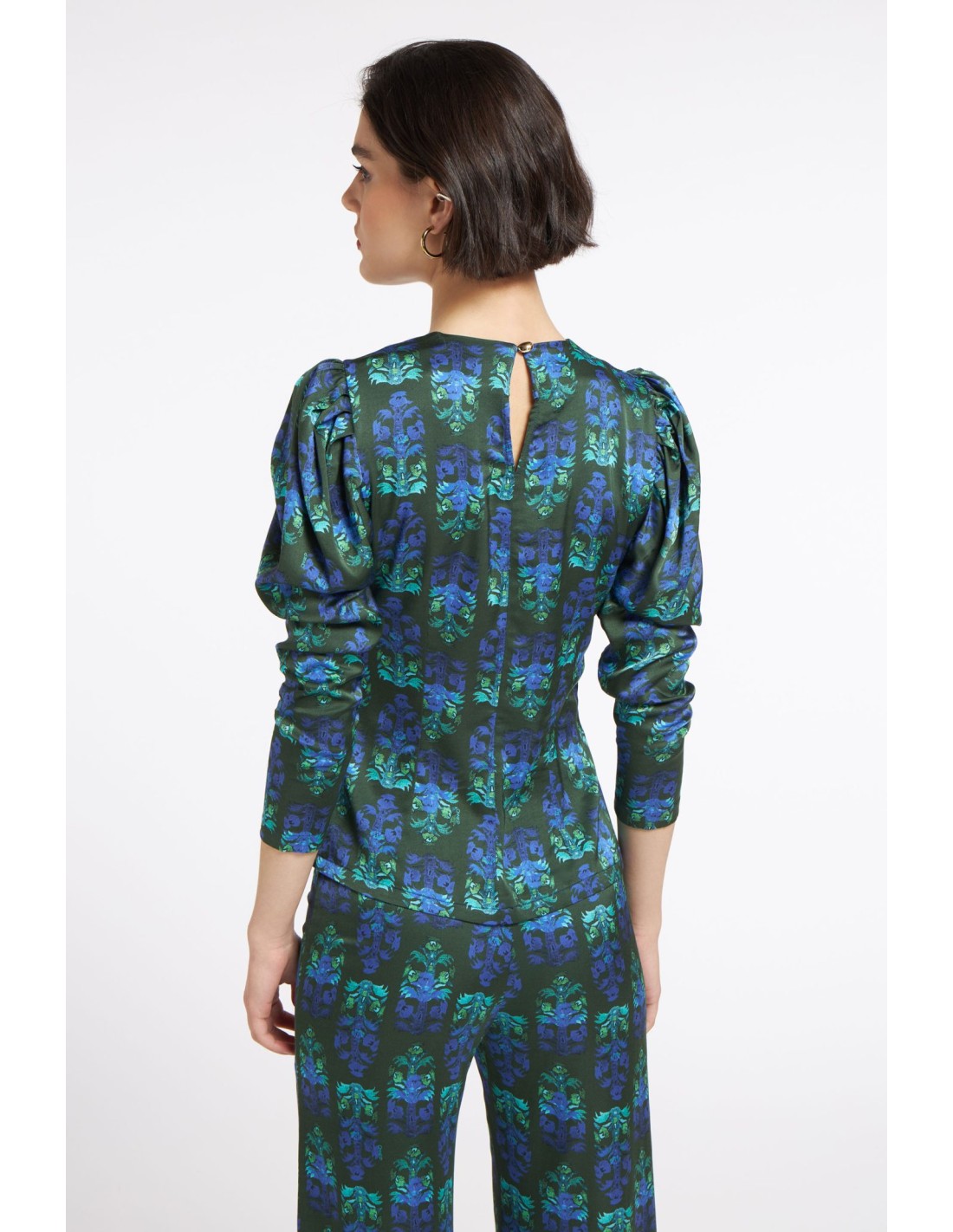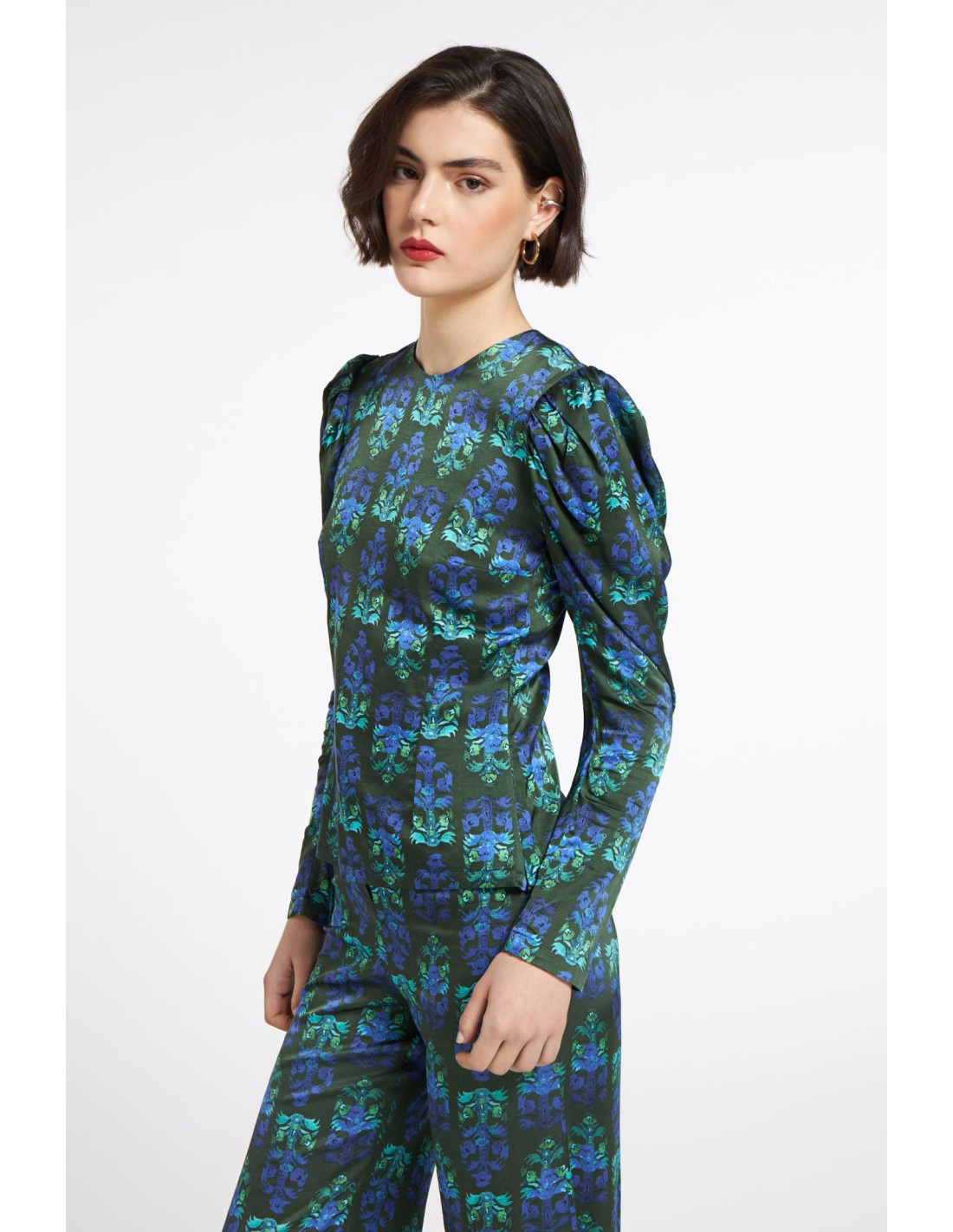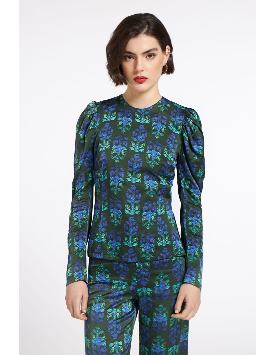 Combínala con nuestros pantalones Zuma a juego para un conjunto coordinado y llamativo, o combínala con pantalones lisos para que la blusa destaque.
