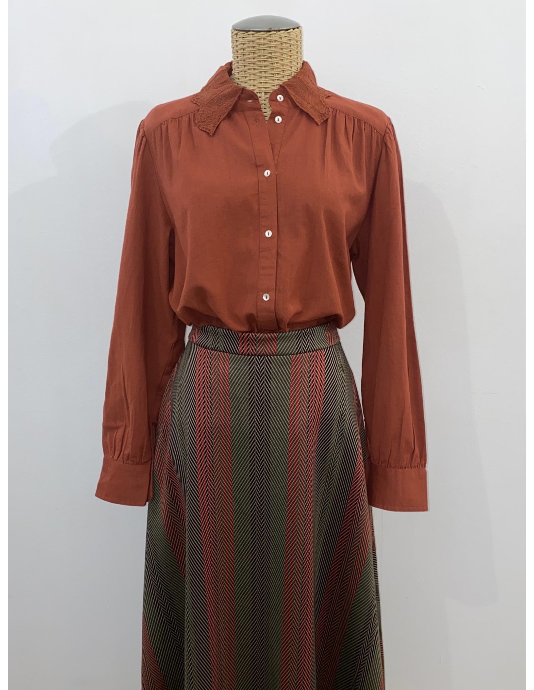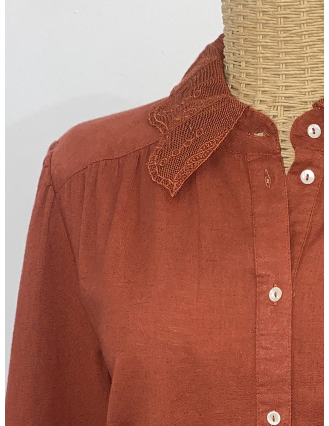 CAMISERA DE CORTE RECTO, CON CUELLO DE ENCAJE DE ENCAJE Y CORTE EN HOMBROS CON LIJERO FRUNCE EN LOS MISMOS. HOD PARIS 85% ALGODÓN, 15% LINO.