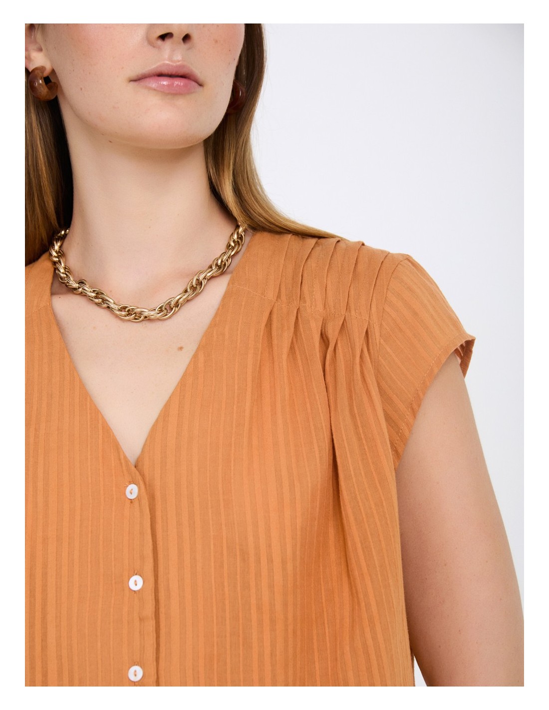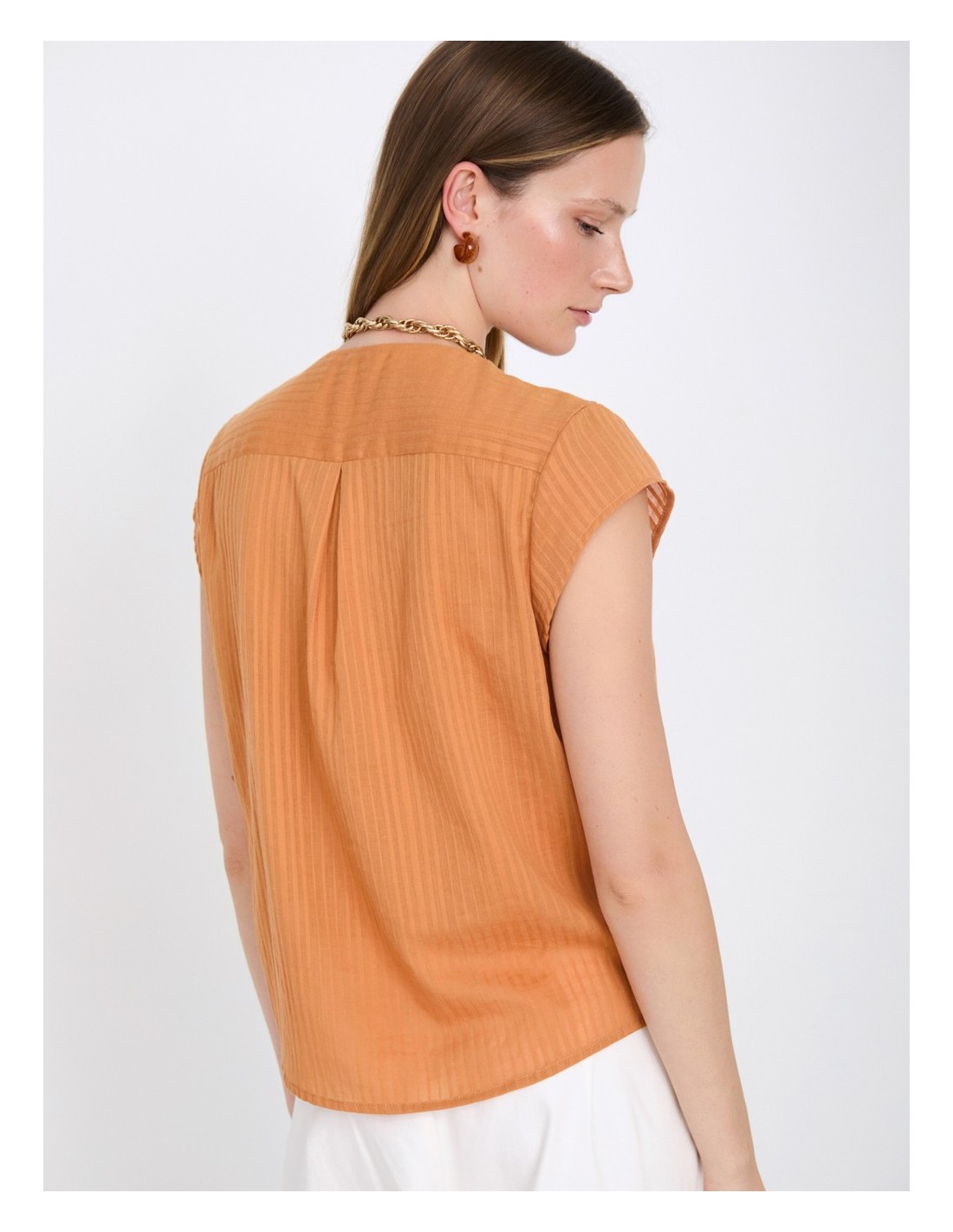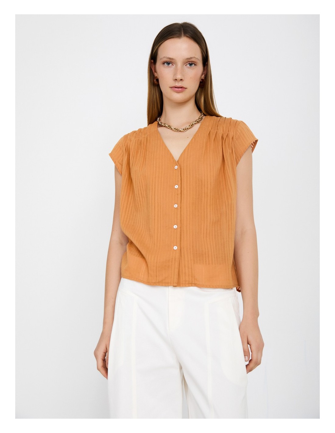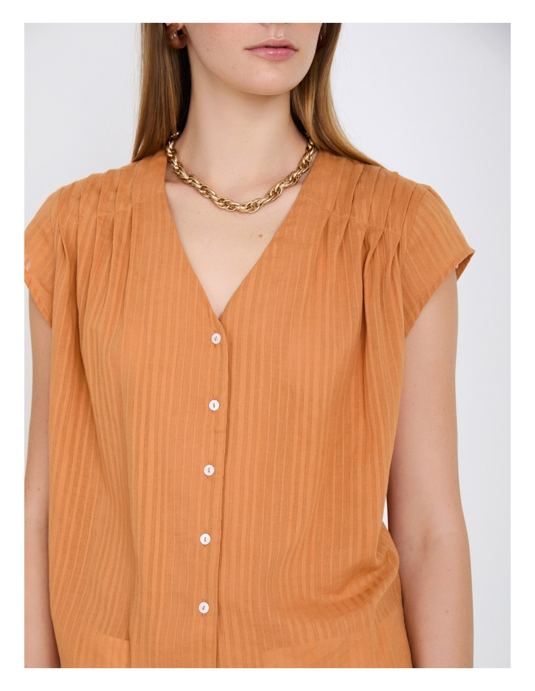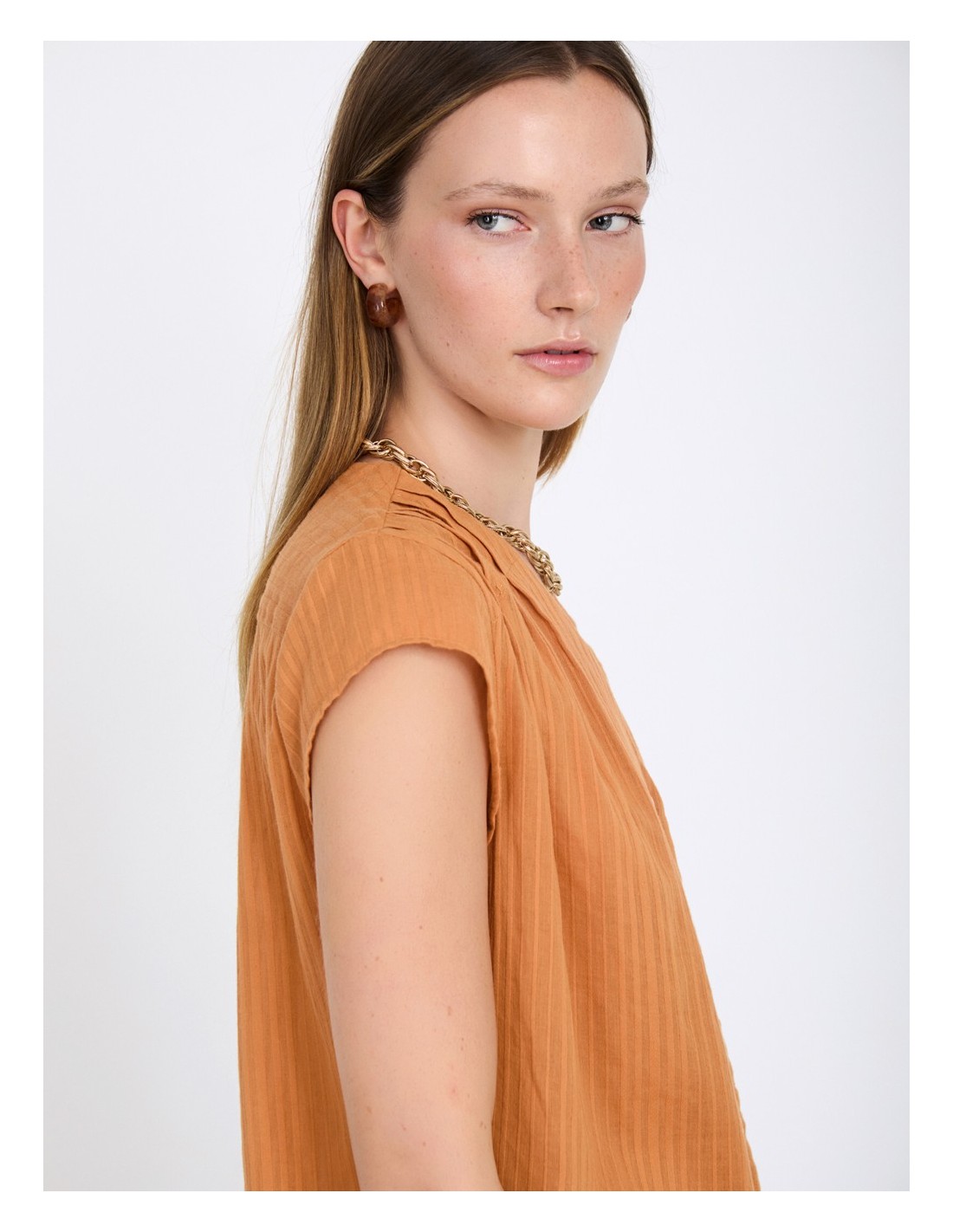 BLUSA SIN MANGAS CON TABLAS EN EL HOMBRO EN TEJIDO CON JARETAS