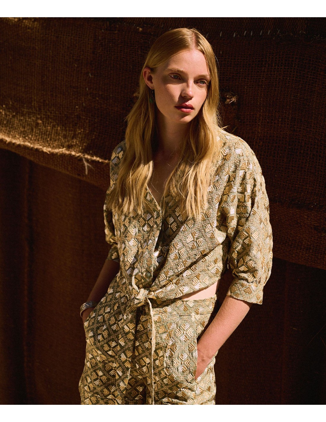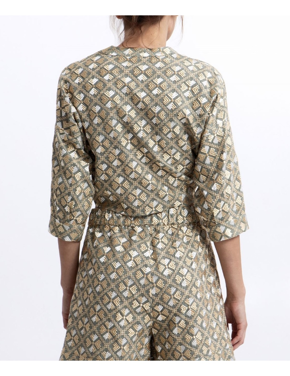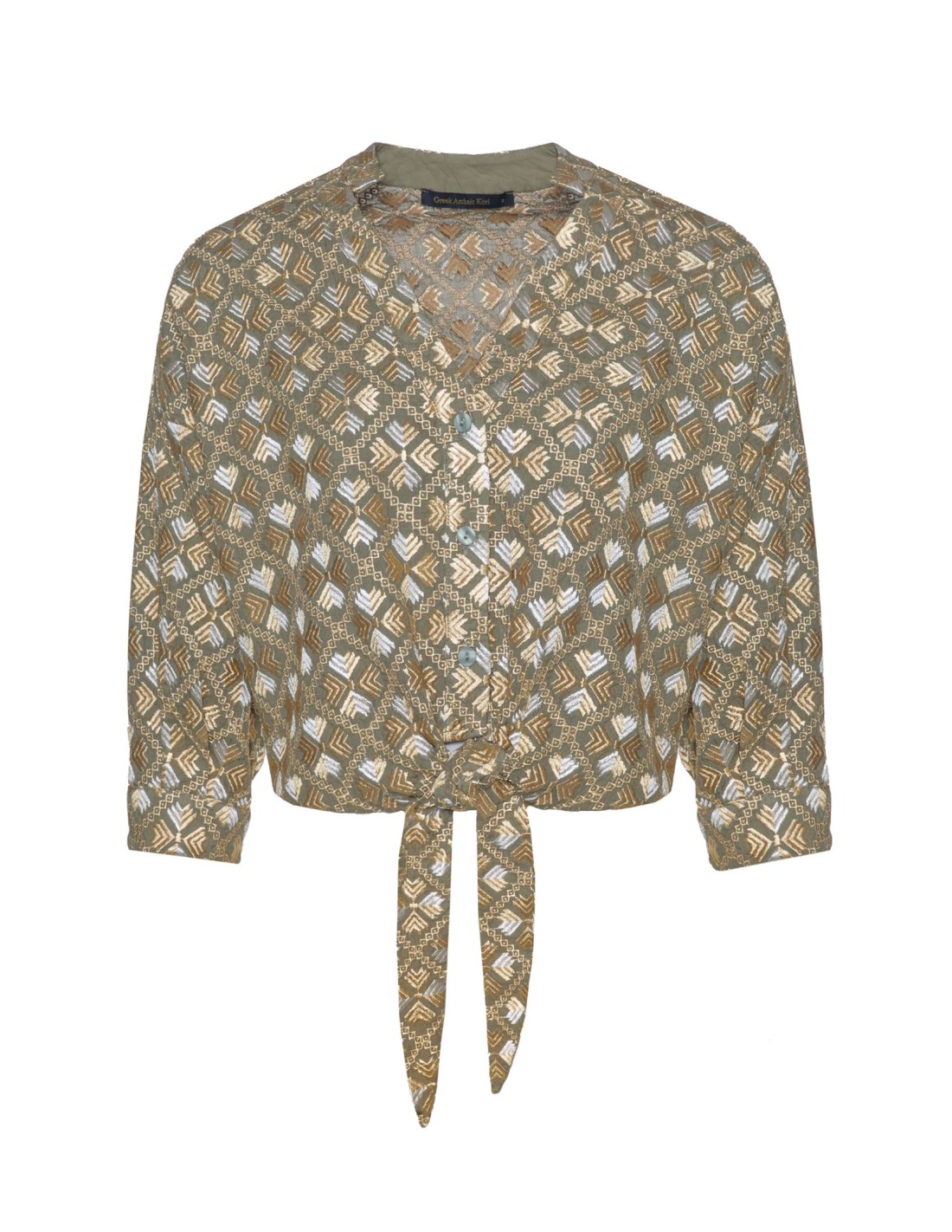 GREEK ARCHAIC KORI NOS PRESENTA ESTE TOP BORDADO EN ORO SOBRE VERDE OJALÁ. PATRÓN FÁCIL DE ADAPTAR. IDEAL PARA CUALQUIER EVENTO DE NOCHE PARA ESTE CERANO. LLÉVAÑO CON VAQUEROS Y SANDALIAS O ELEVA EL LOOK CON PANTALÓN A JUEGO.