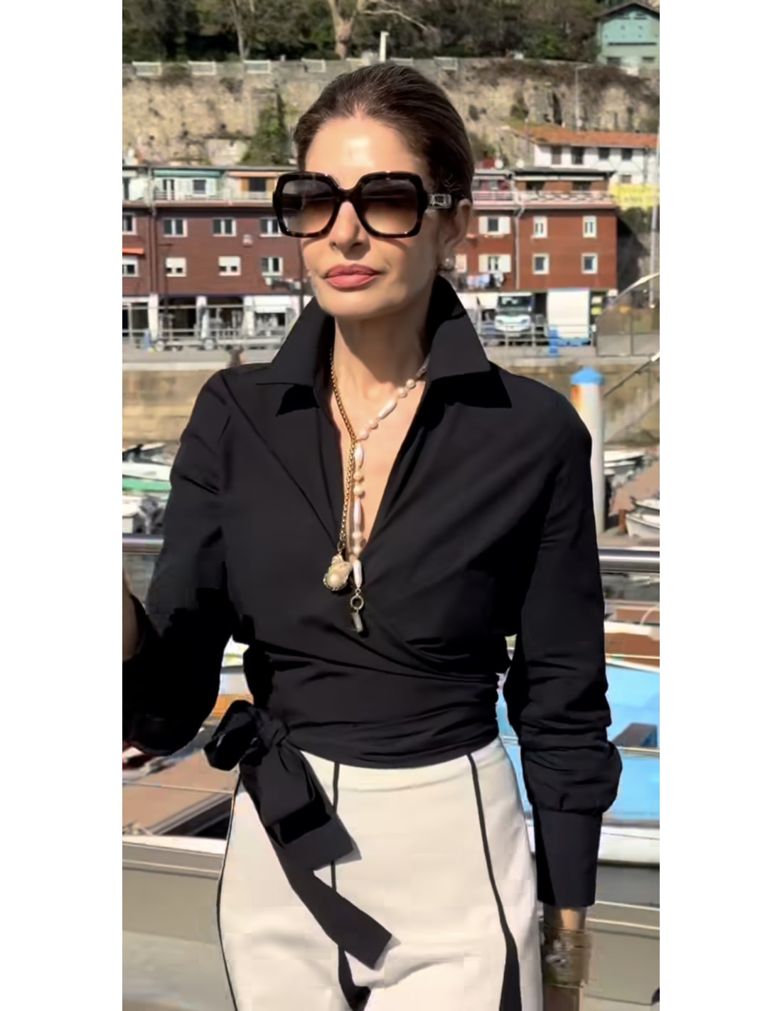 Blusa envolvente cruzada con lazada lateral. Algodón/licra de ahí que se ajuste como un guante. Paisie London. La talla 8 equivale a una talla 36.