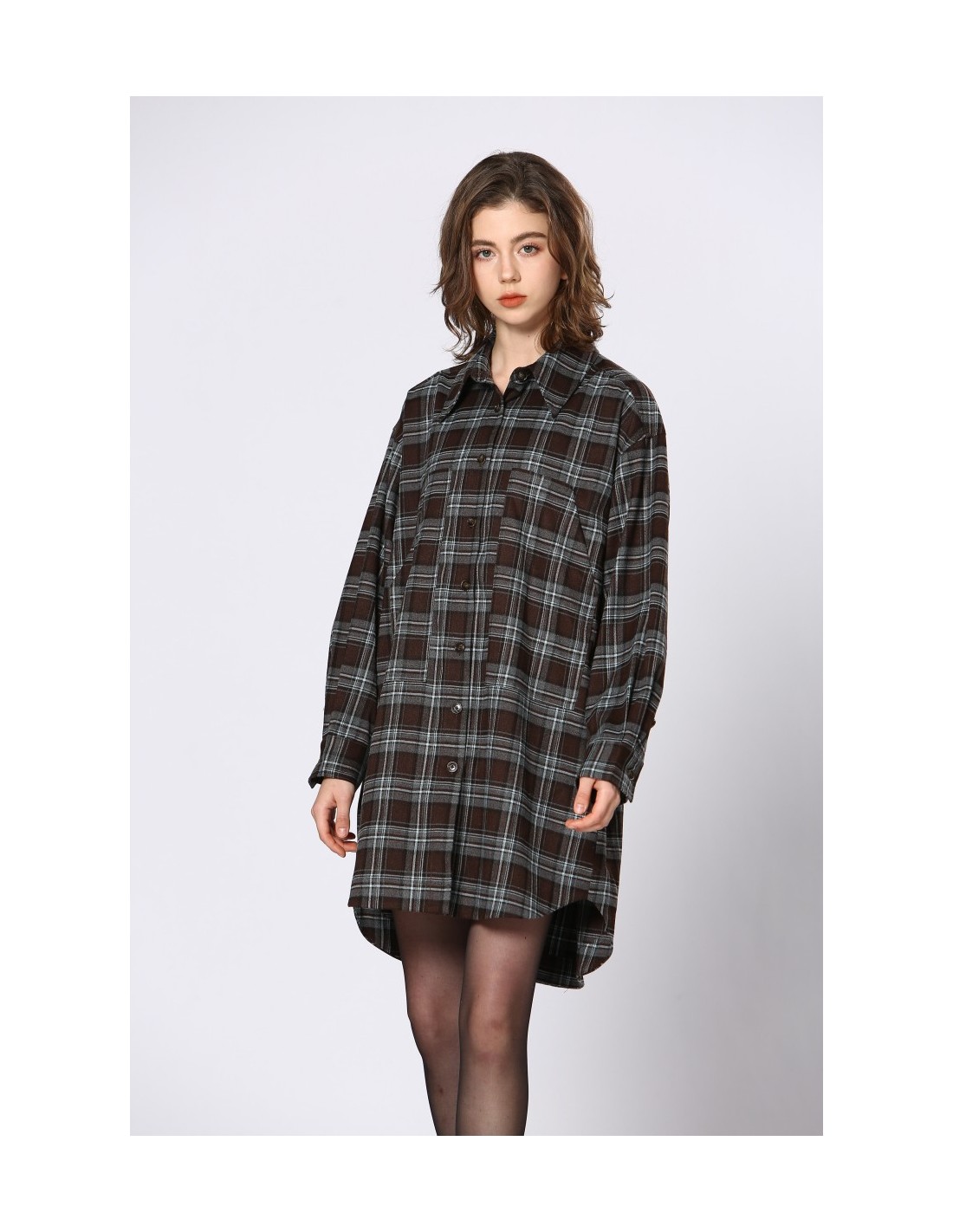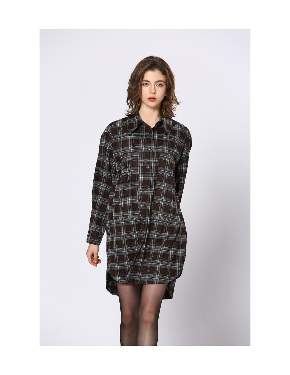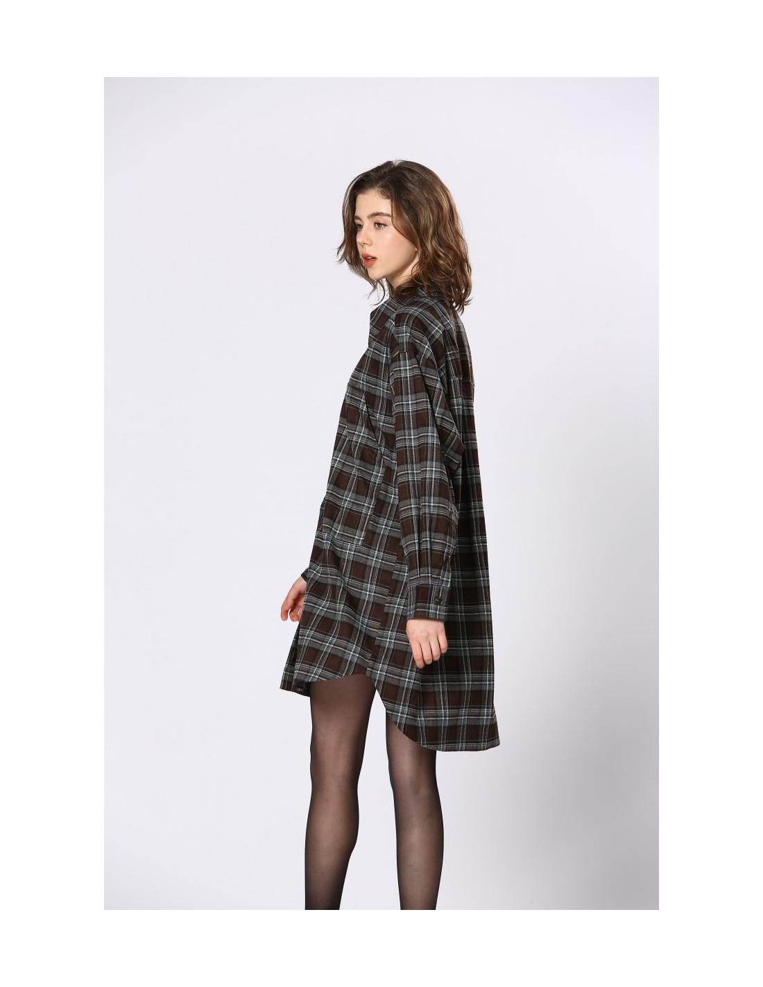 VESTIDO CAMISERO OVERSIZE CON ESTAMPADO DE CUADROS 58% TERYLENE 38% POLYAMIDA 4% ELASTAN