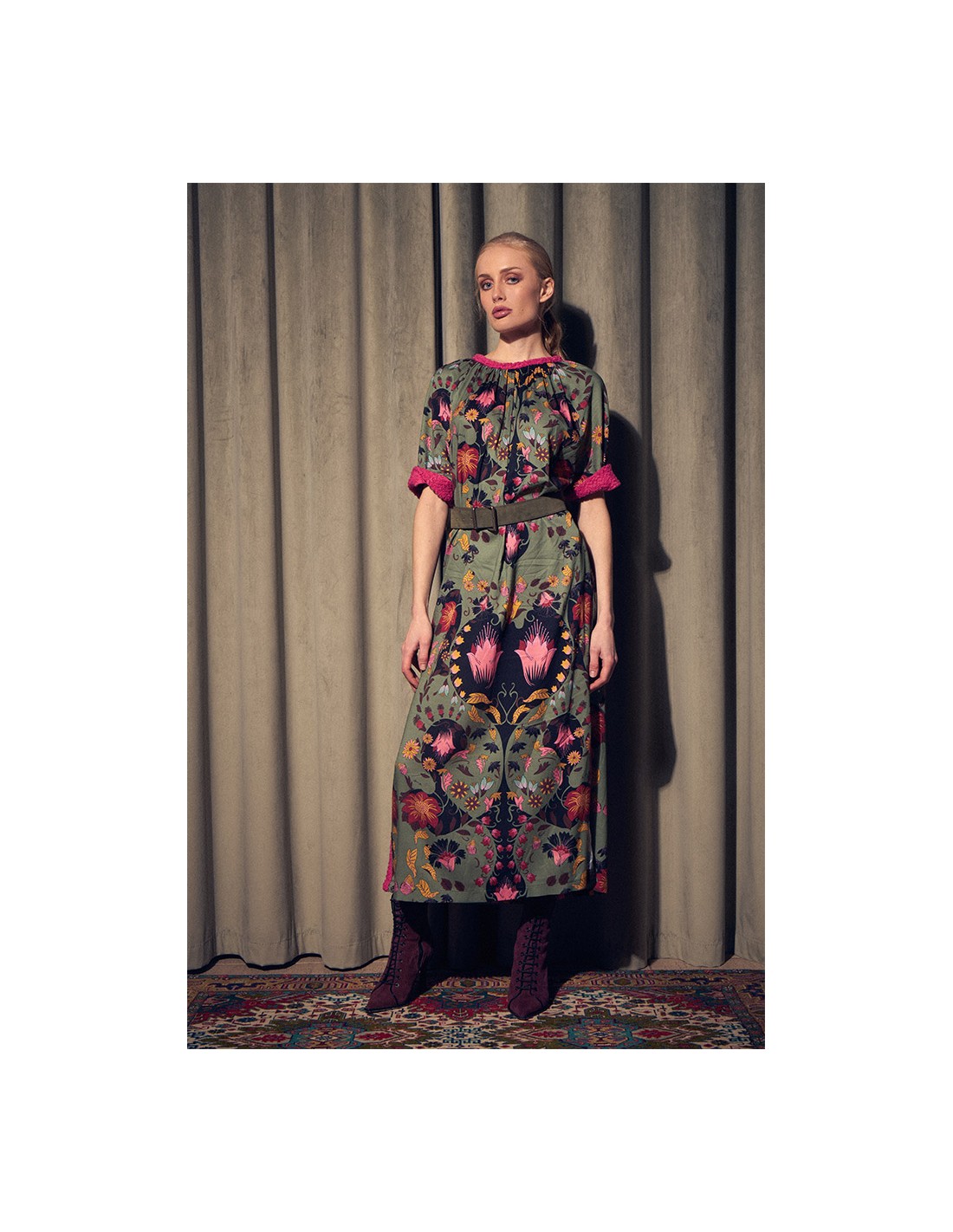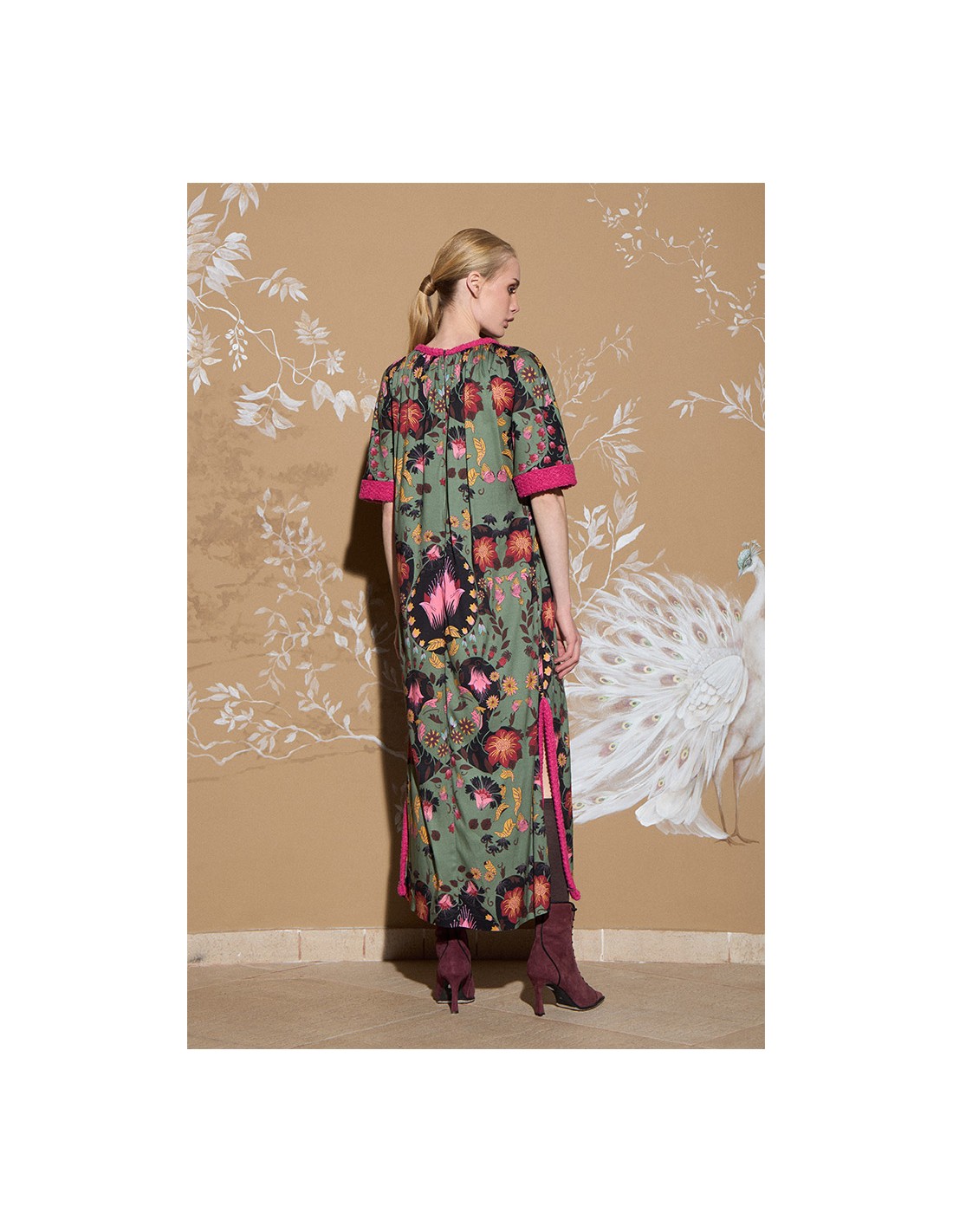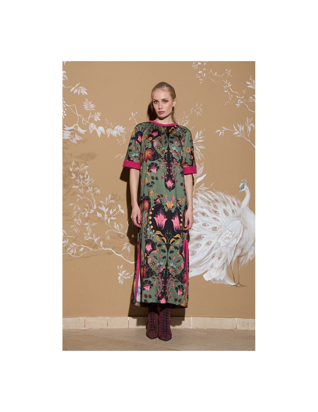 El vestido largo Mabel Oil es una pieza encantadora con distintivos detalles de lana rosa fuerte alrededor del escote y el extremo de las mangas cortas. Los volantes en la parte delantera del cuello hacen que este atractivo aspecto sea aún más alegre, mientras que las aberturas en ambos lados dan un poco de comodidad adicional a sus pasos de invierno. Cristina Beautiful Life. 97% VISCOSA 3% SP