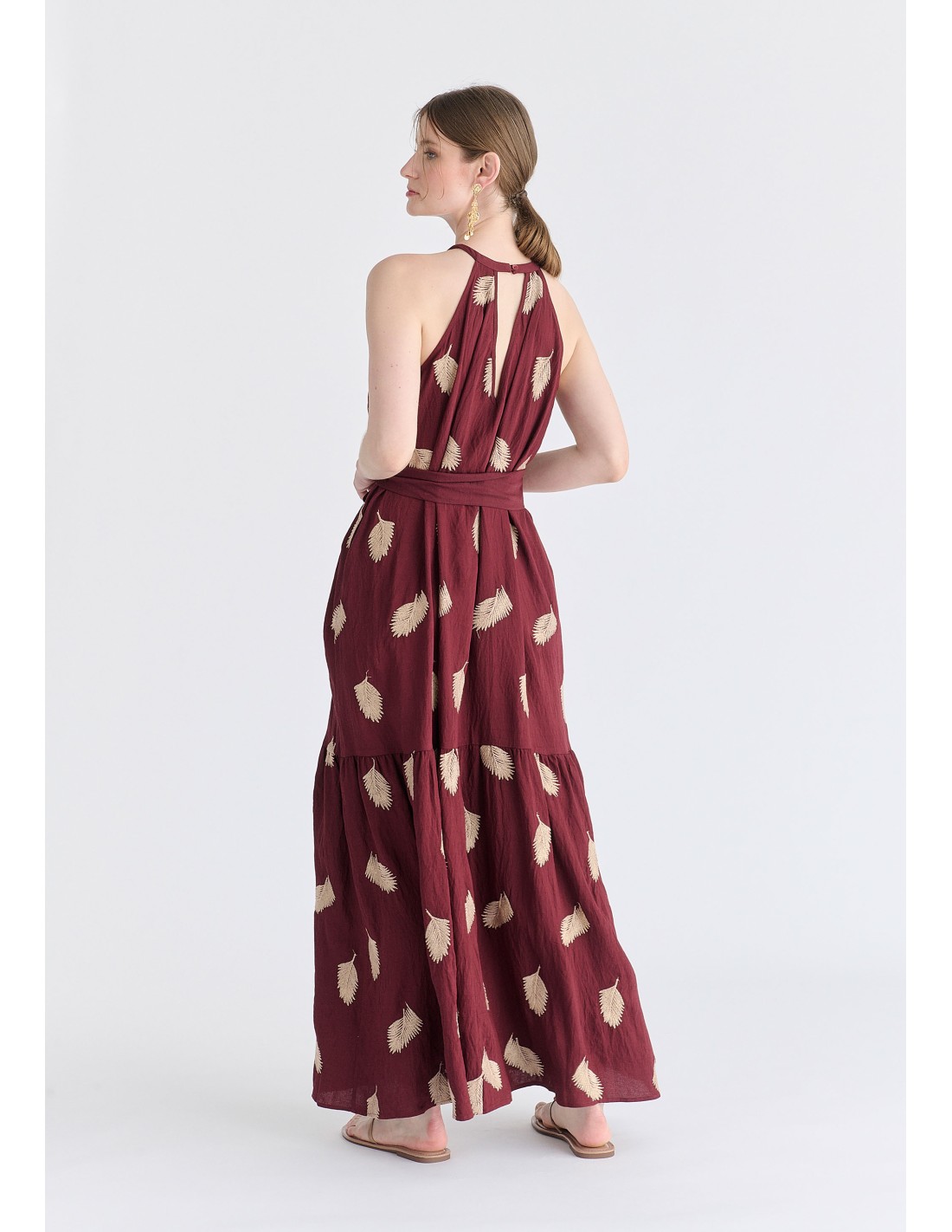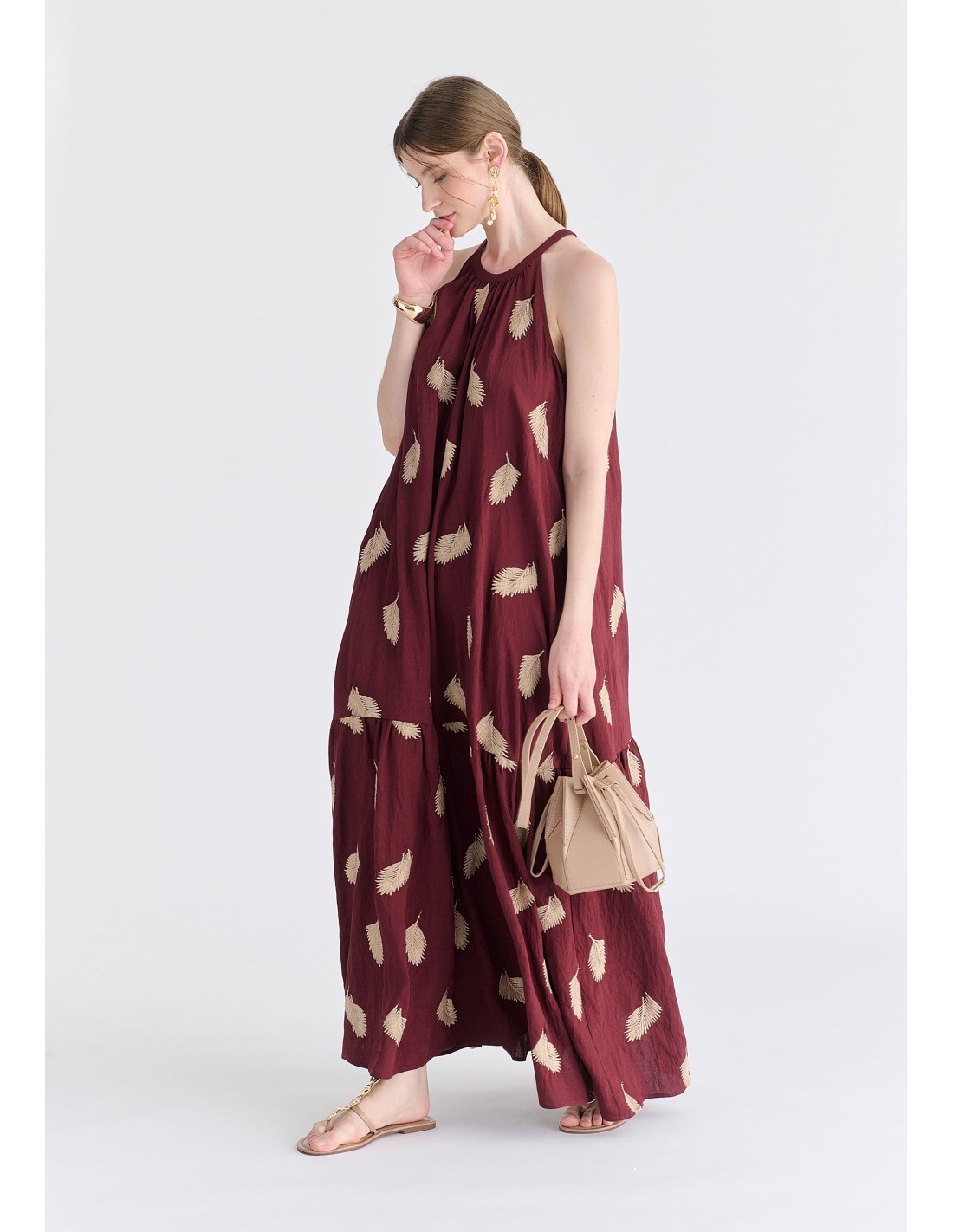 Este vestido largo en tono granate de Paisie London es la definición perfecta de estilo sofisticado y relajado. Su diseño fluido cae con suavidad, creando un movimiento elegante que realza cada paso.