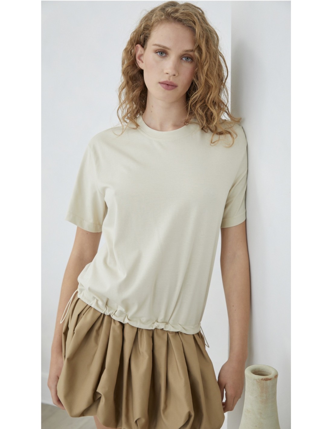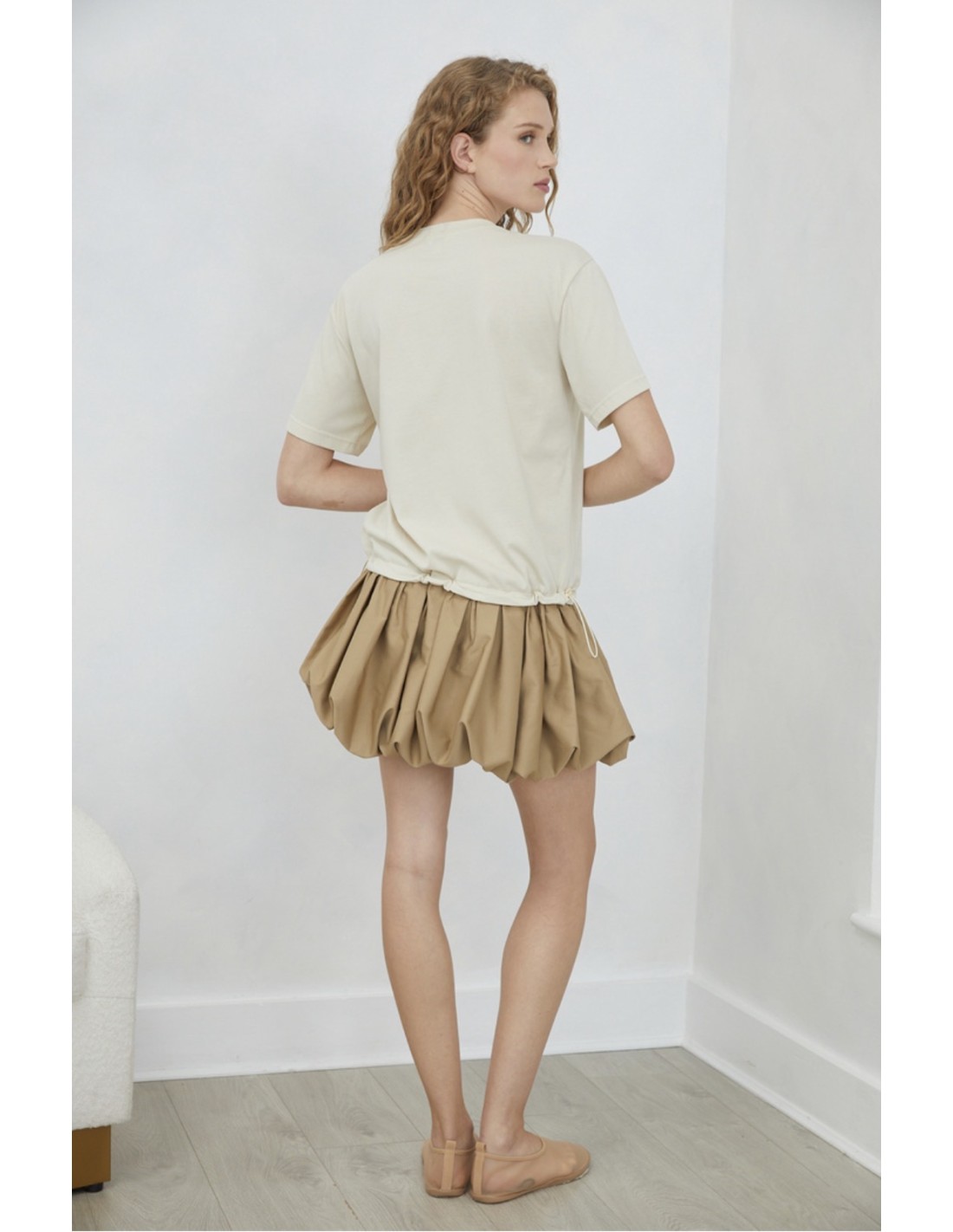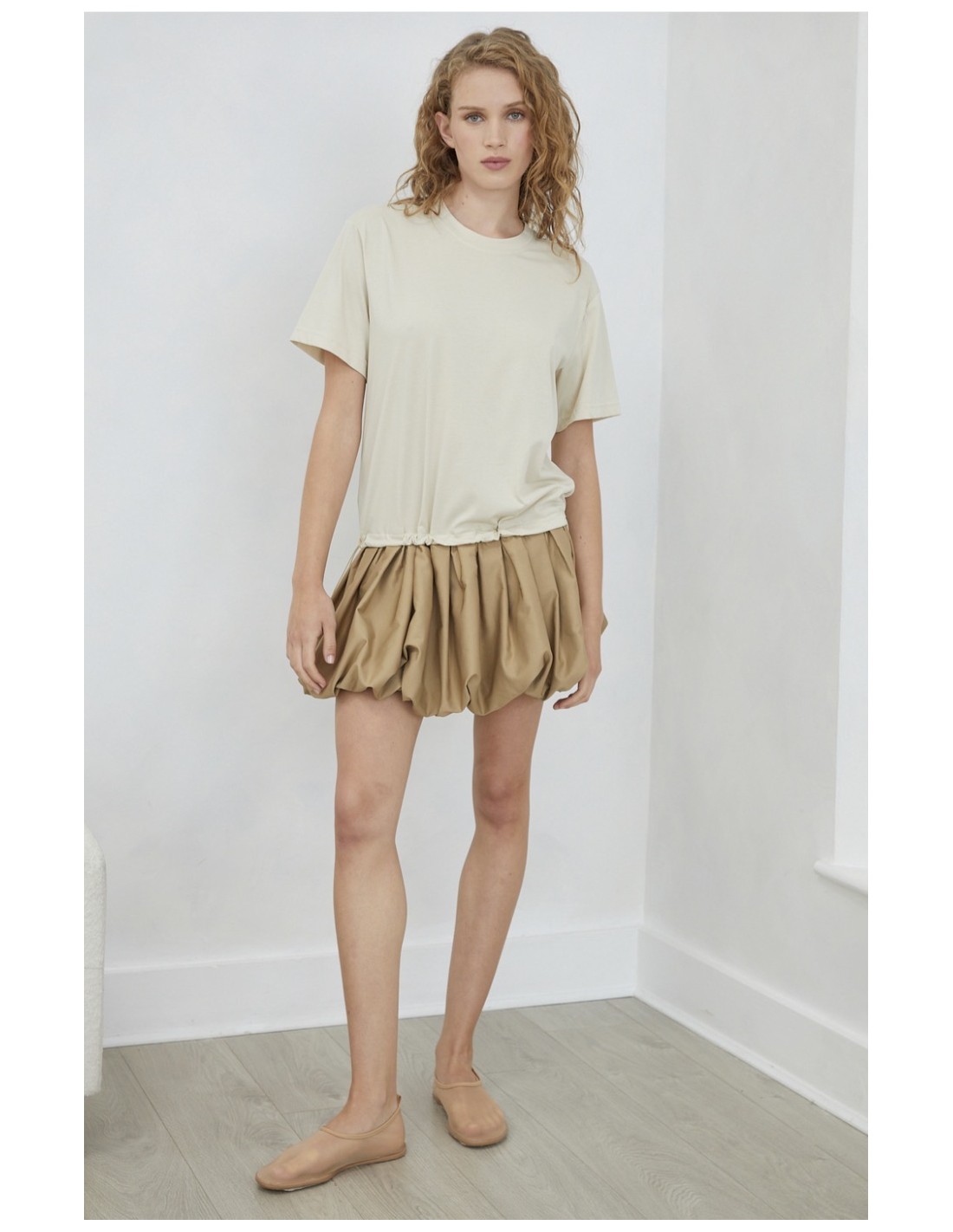VESTIDO DE PUNTO DE ALGODÓN EN PARTE SIPERIOR Y PARTE INFERIOR AJUSTABLE CON CINTAS ELÁSTICAS. ES MULTIPOSICION, PUEDE LLEVARSE A MODO DE CAMISERA ABLUSAD + VESTIDO O TAMBIÉN SUELTO RECTO. JOVONNA LONDON